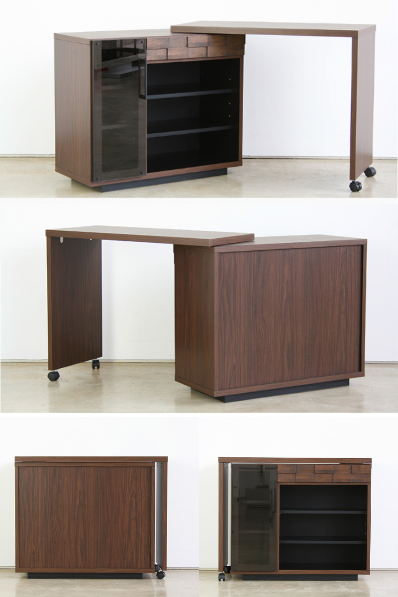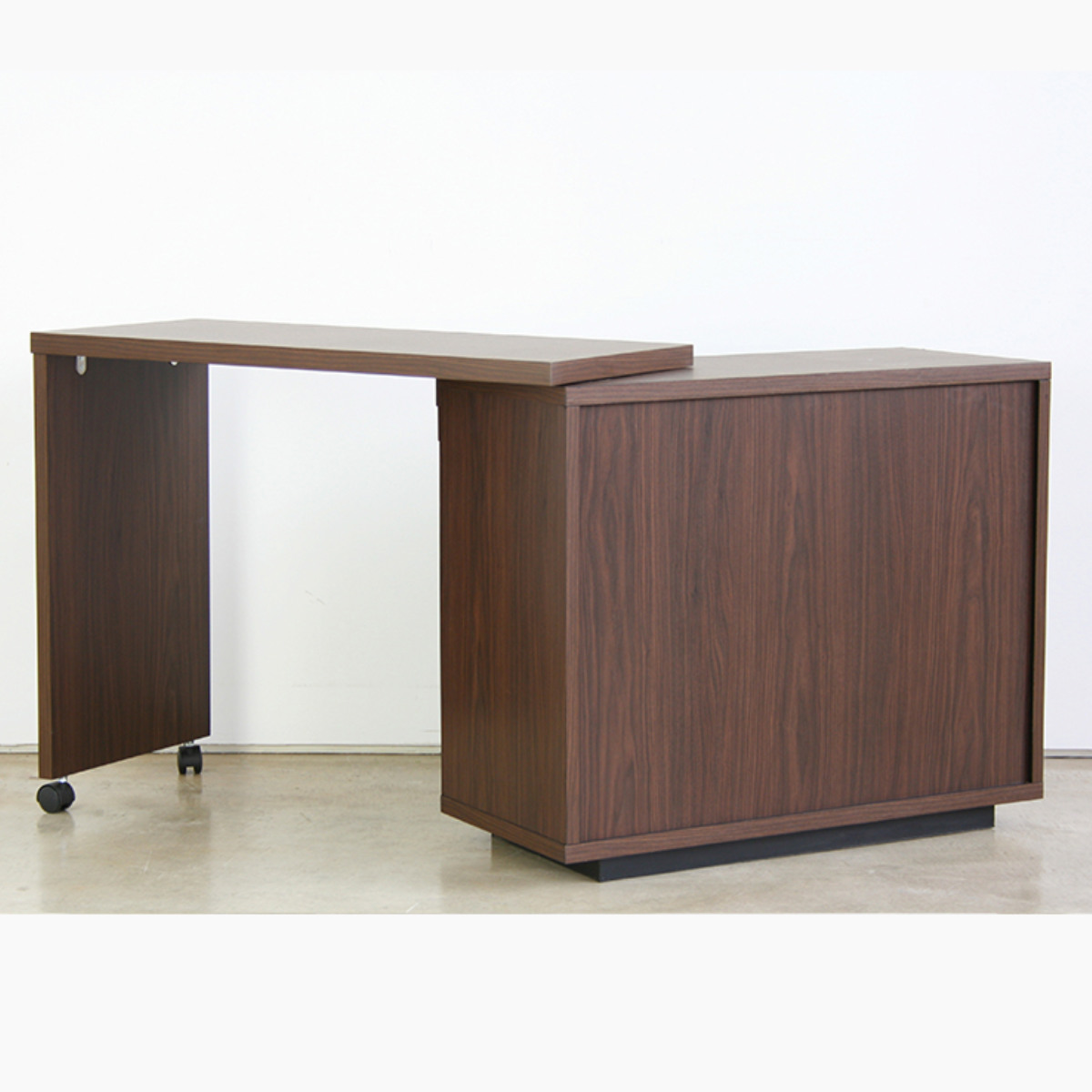 デスク部分は回転させて配置できる設計。普段はコンパクトに、作業時には広く使えるため、パソコン作業や書き物などさまざまなシーンに対応します。