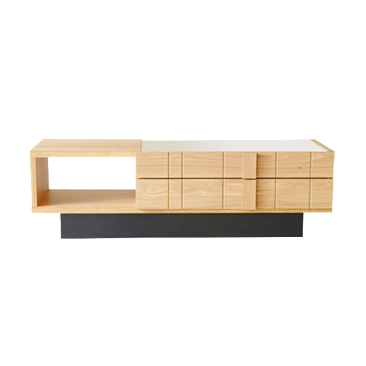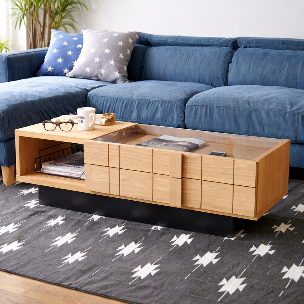 美しい木目とガラス天板を組み合わせた、上質感のあるローテーブル。やさしい色合いが空間に自然と馴染み、ナチュラルで落ち着いた雰囲気を演出します。ナチュラルテイストや北欧モダンスタイルのインテリアにもおすすめです。