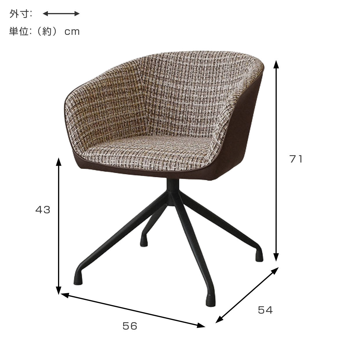 | サイズ | 約 幅56×奥行54×高さ71(cm) 座面高:約 43(cm) |