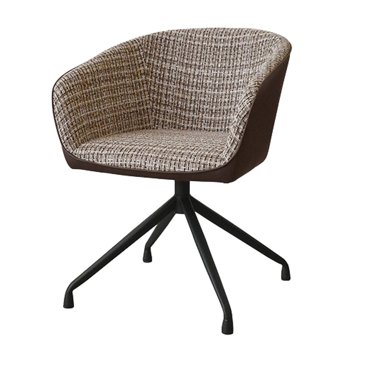 座面内側には複数の色を織り込んだ表情豊かなファブリックを使用。側面には合成皮革を組み合わせることで、質感のコントラストが際立ち、洗練されたモダンな印象に仕上げています。