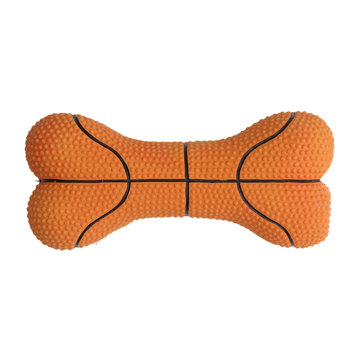 ワンちゃんがくわえやすい形状で、室内でもアクティブに遊べる、スポーティーなボーン型ドッグトイシリーズです。元気なバスケットデザインと、ポップなサッカーデザインの2種類よりお選びいただけます。
