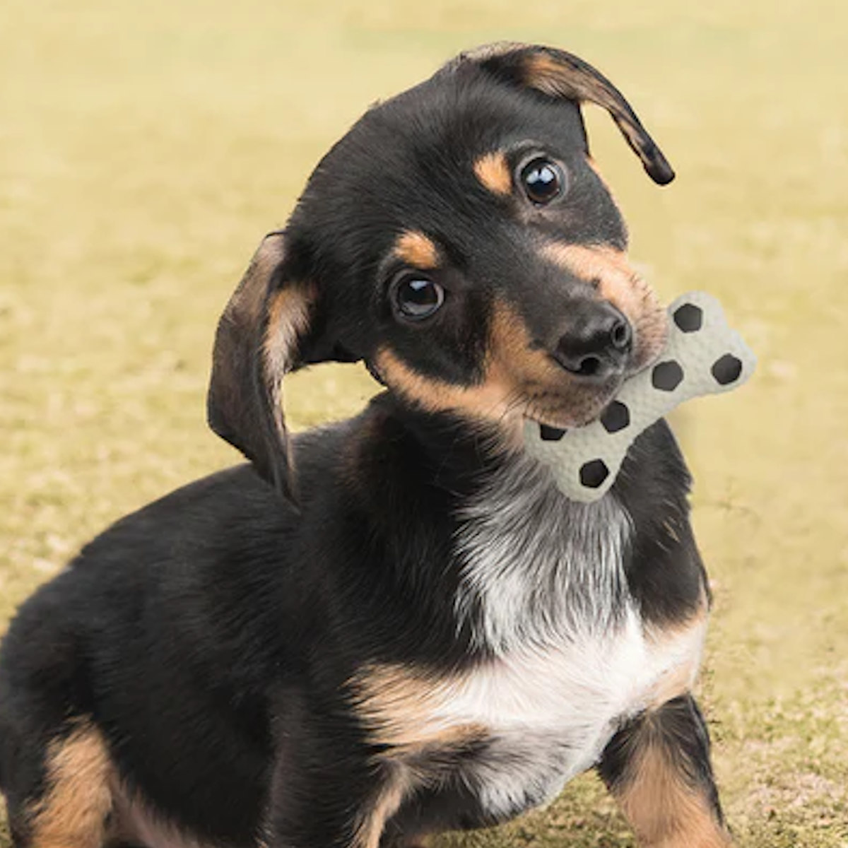 ●ゴム製でワンちゃんがくわえやすい形状です。