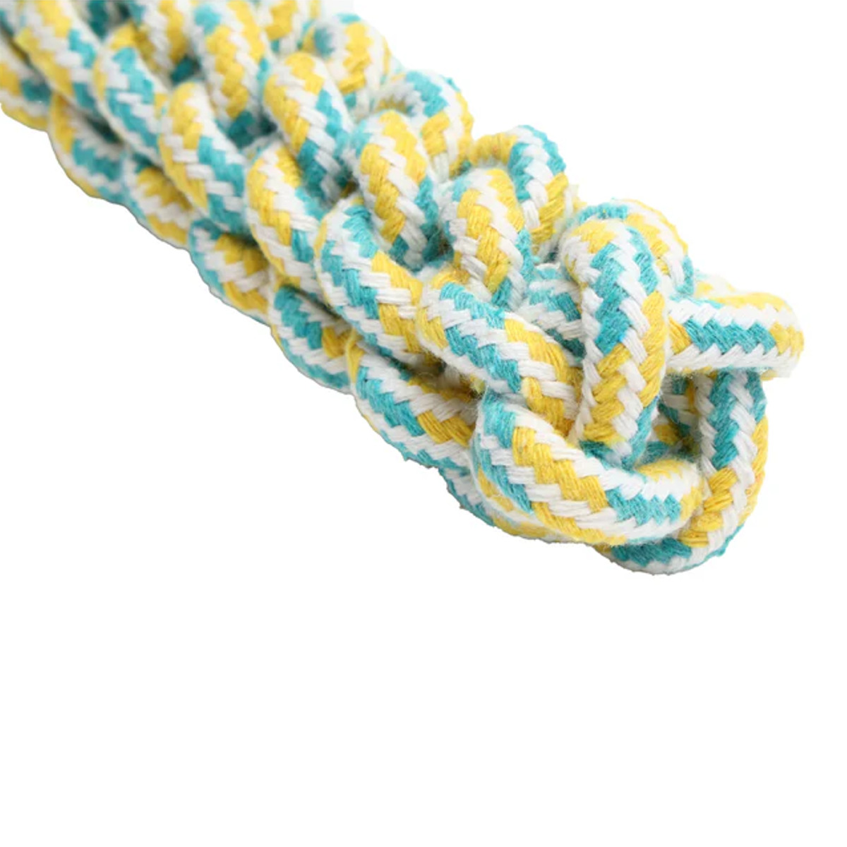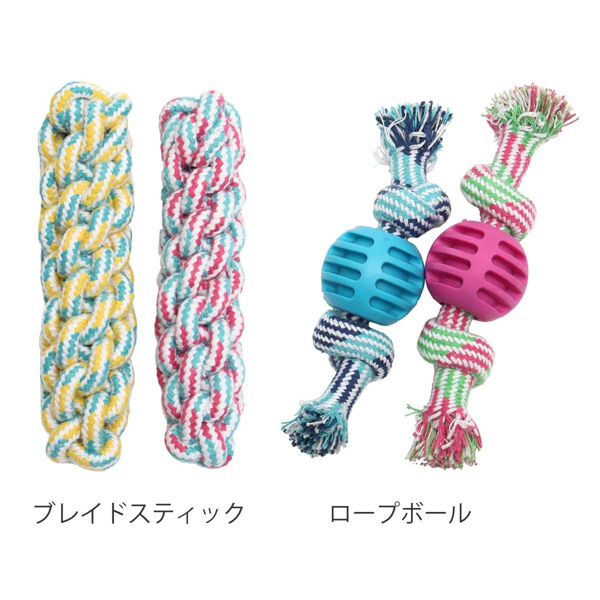 噛む・引っ張る・追いかける等、楽しく遊ぶことができ、しっかり噛めるので、ストレス解消やデンタルケアにもってこいです。引っ張るとしなやかに伸びる程度の硬さに編んであるので、小型犬やシニア犬でもお使いいただけます。