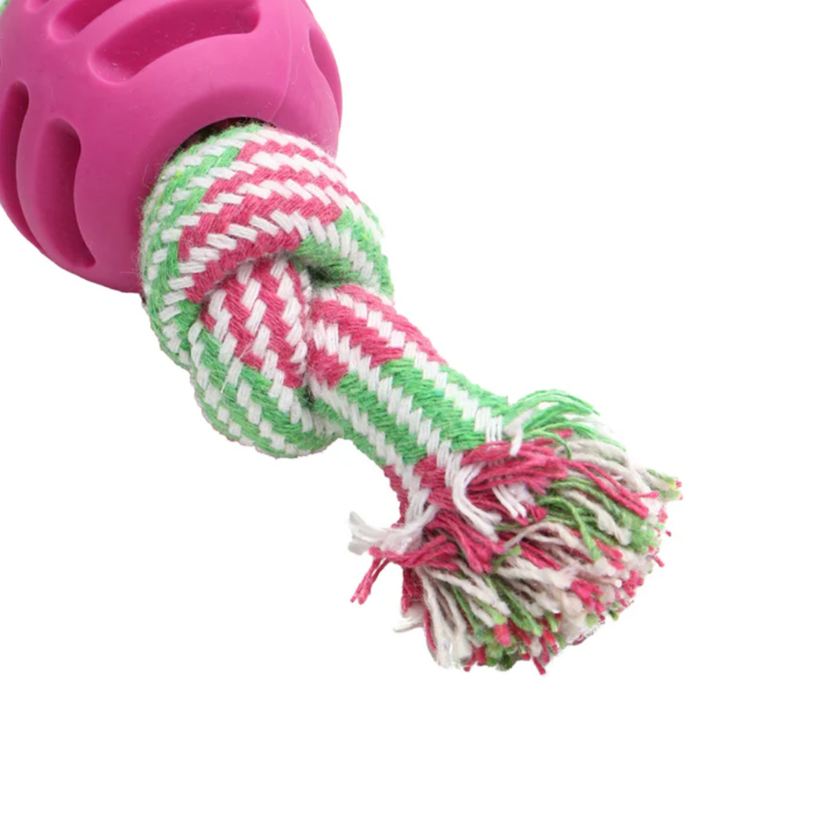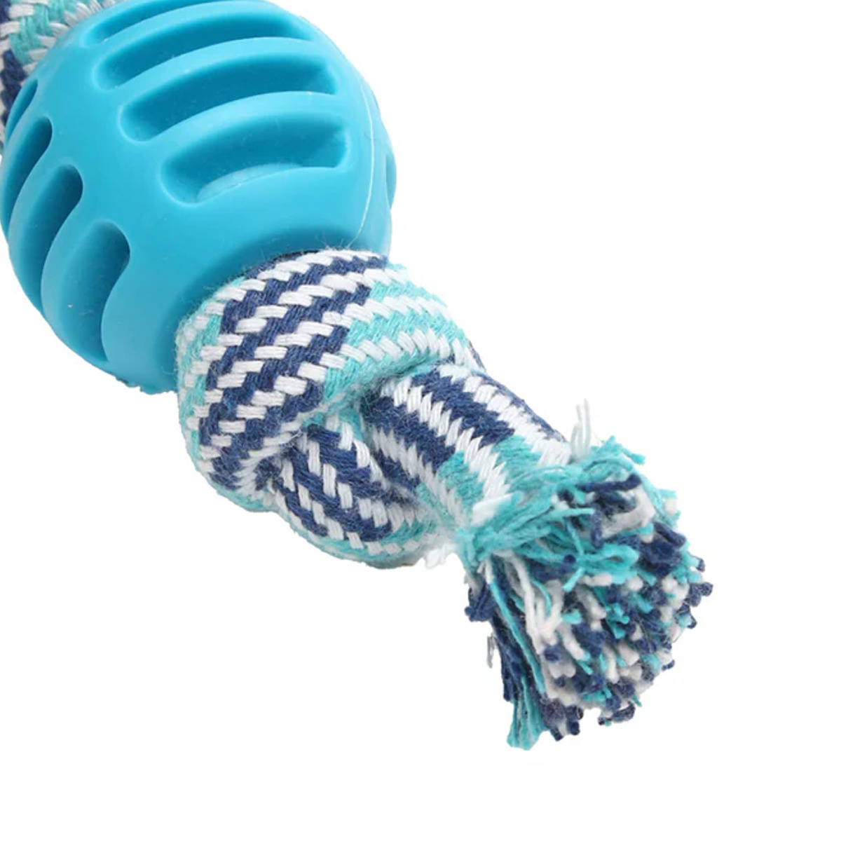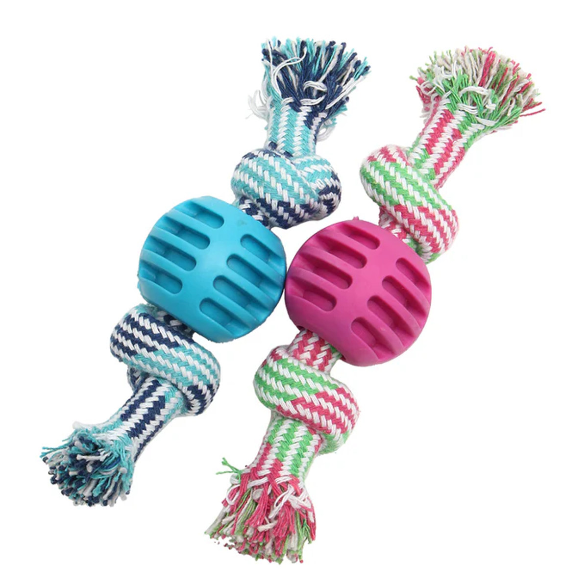 ロープの中心部にゴム製のボールが結び留めてあります。噛む・引っ張る・追いかける等、楽しく遊ぶことができ、ロープ・結び目・ゴムボールと3種類の噛み心地を楽しめるので、ストレス解消やデンタルケアにもってこいです。