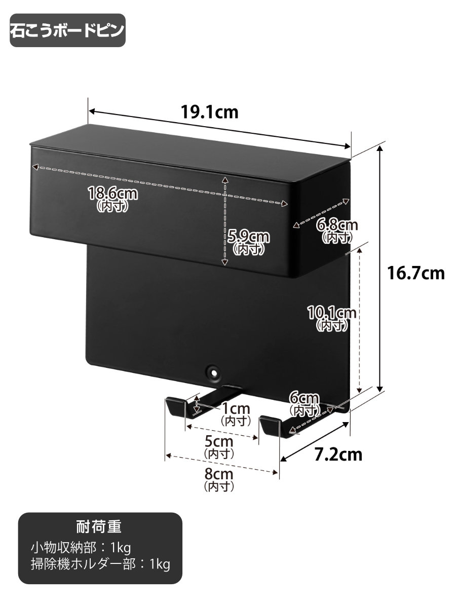 | 耐荷重 | 小物収納部:1kg 掃除機ホルダー部:1kg(静止荷重) |