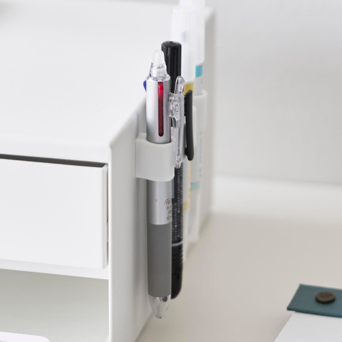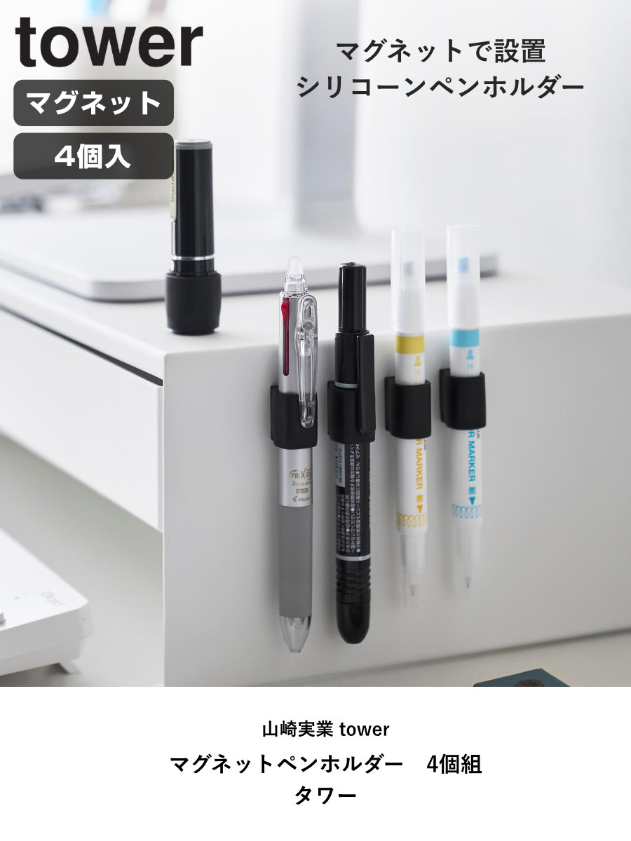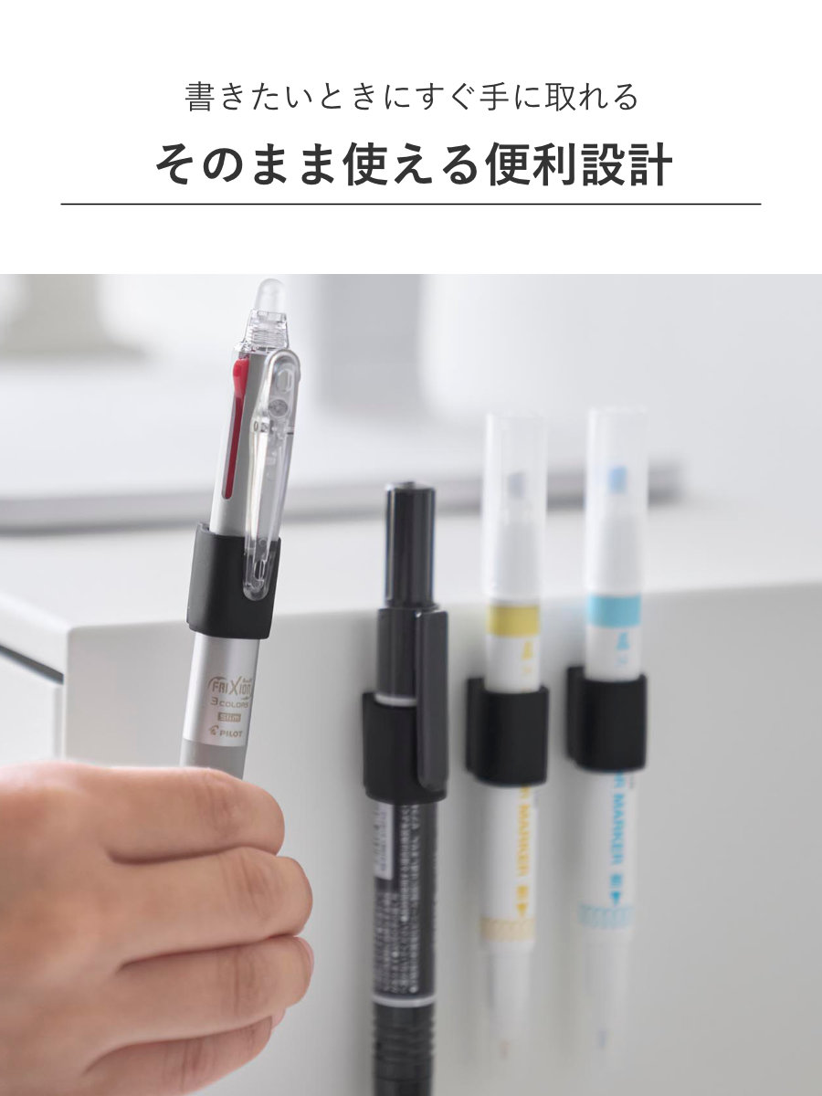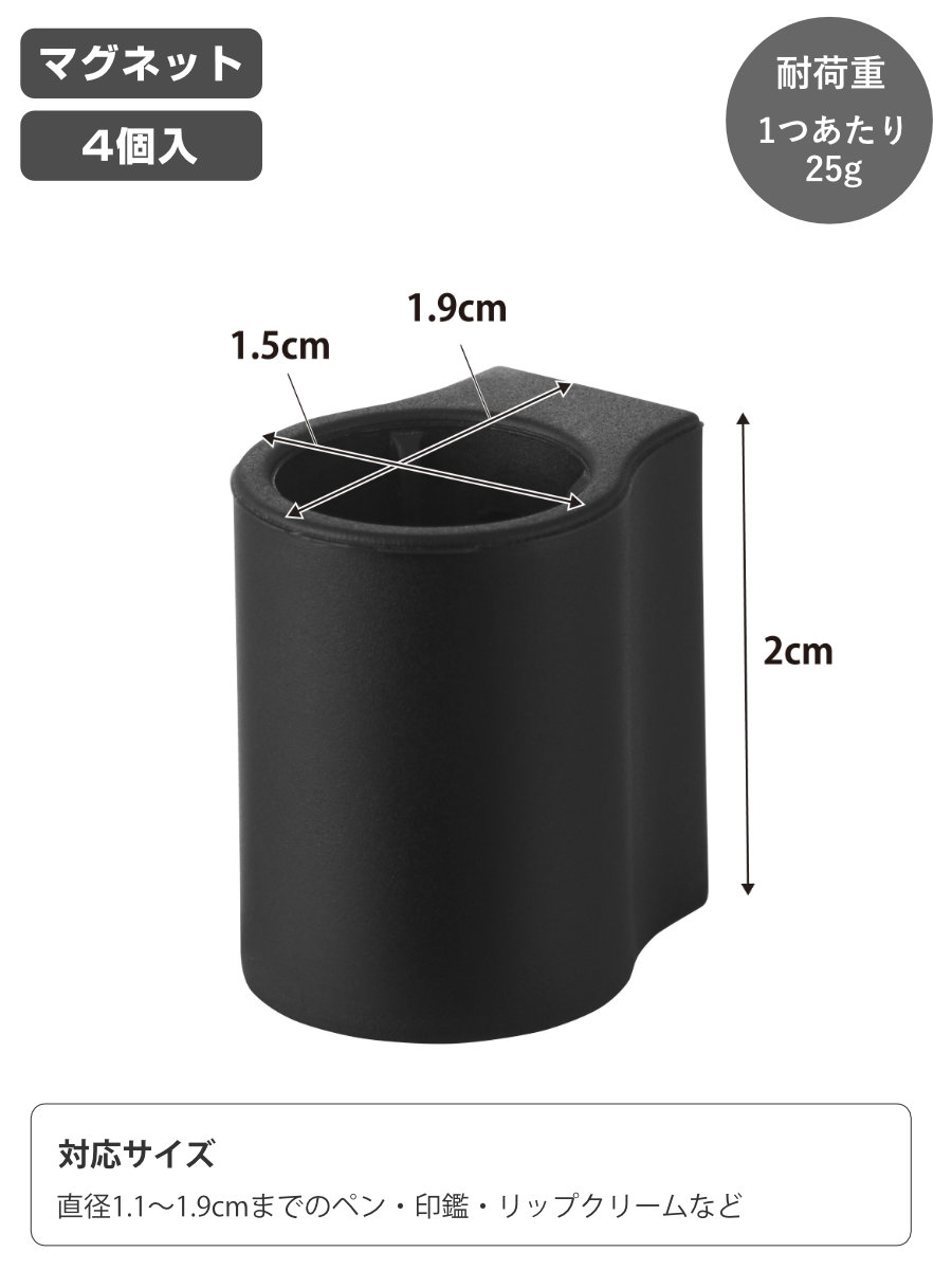 4個入りなので、デスクの同じ箇所にまとめて設置でき、蛍光ペンやマジック、赤ペンなど種類ごとにペンを整理して収納できるため、使いたいペンをすぐ手に取れて、仕事や作業の効率をぐっと高められます。