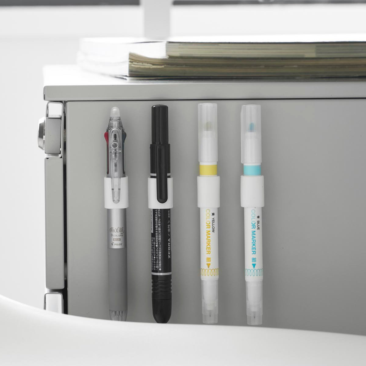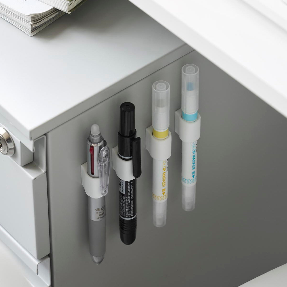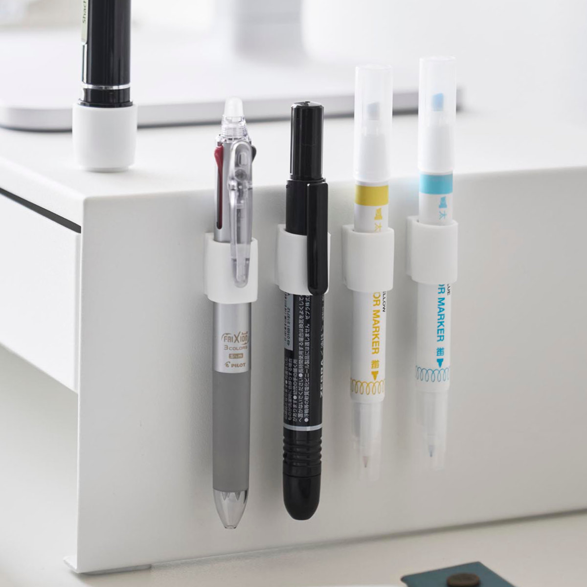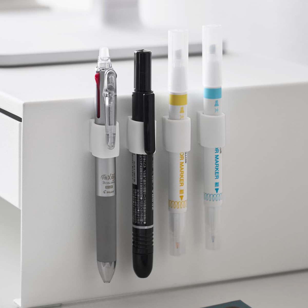 4個入りなので、デスクの同じ箇所にまとめて設置でき、蛍光ペンやマジック、赤ペンなど種類ごとにペンを整理して収納できるため、使いたいペンをすぐ手に取れて、仕事や作業の効率をぐっと高められます。