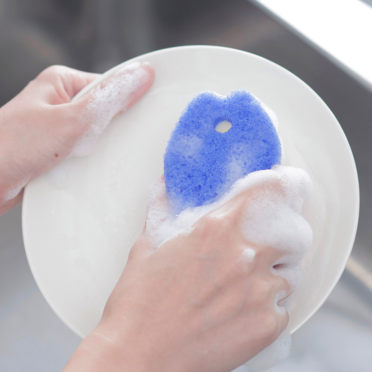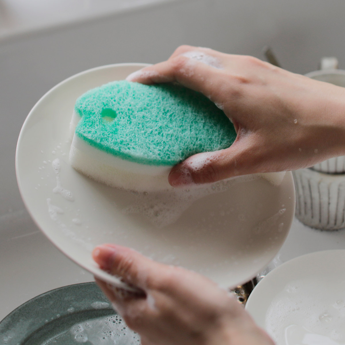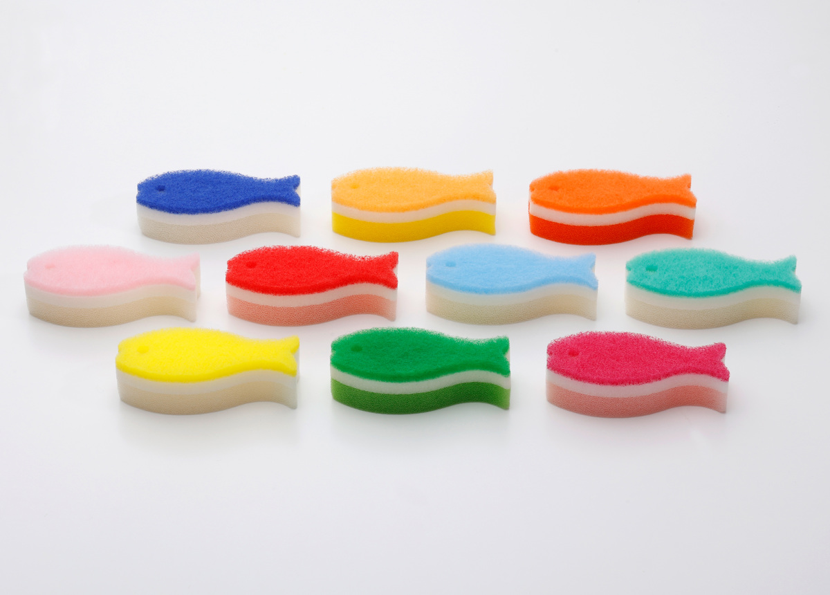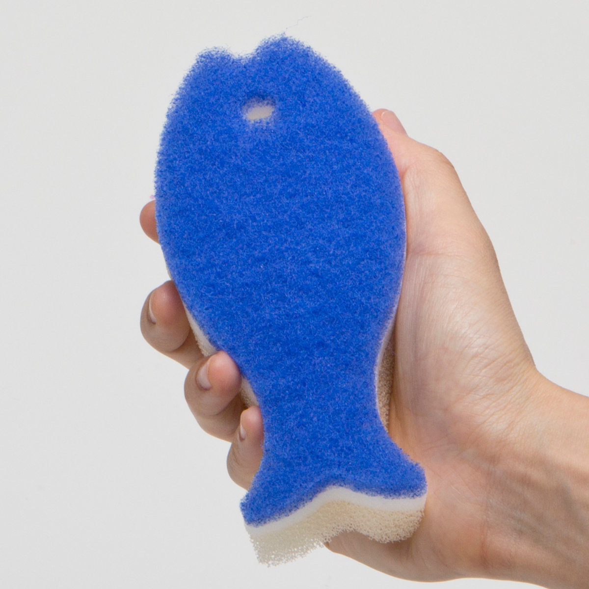 3層構造で汚れスッキリ、手に馴染む使いやすいおさかなスポンジ