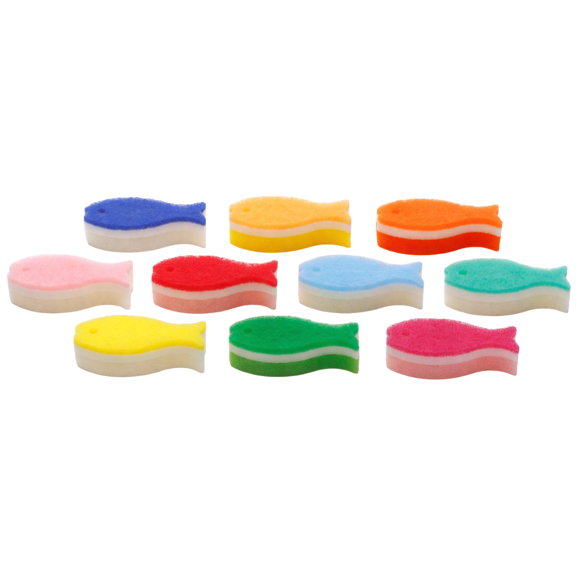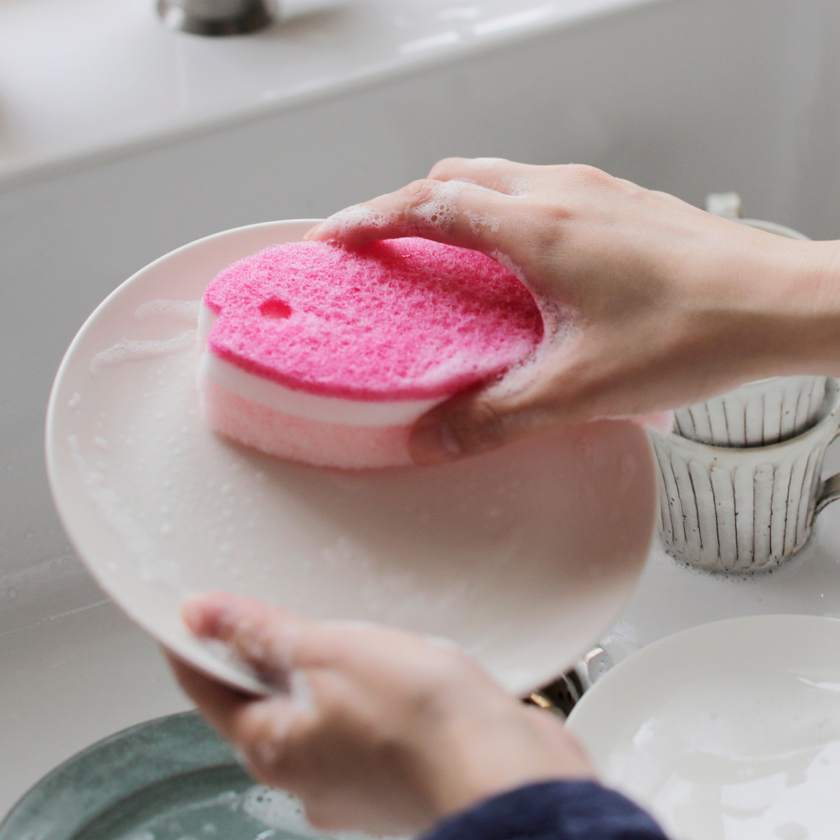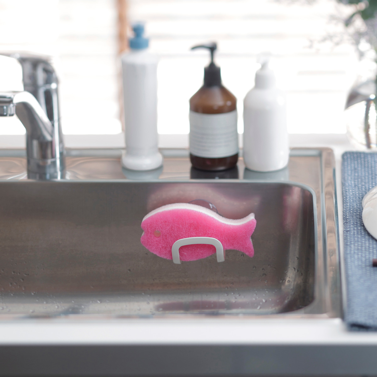 3層構造で汚れスッキリ、手に馴染む使いやすいおさかなスポンジ