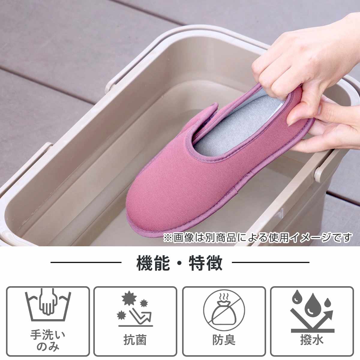 抗菌・防臭加工の中底で素足のまま履いても安心。汚れてしまった場合も、手洗いが可能なのでいつでも清潔に保てます。