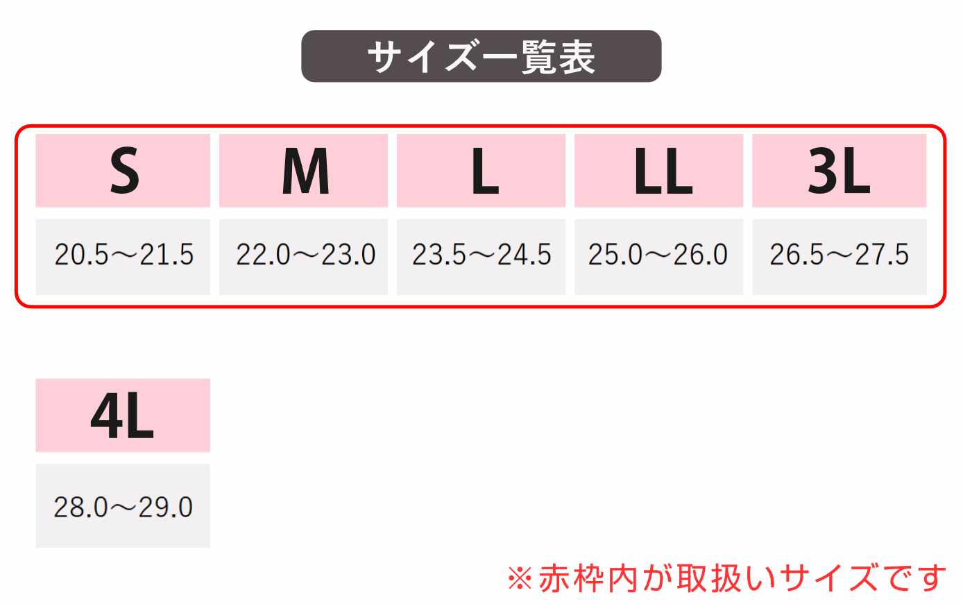 | 種類 | ブラウンS、ベージュS、ワインS、ブラウンM、ベージュM、ワインM、ブラウンL、ベージュL、ワインL、ブラウンLL、ベージュLL、ワインLL、ブラウン3L |