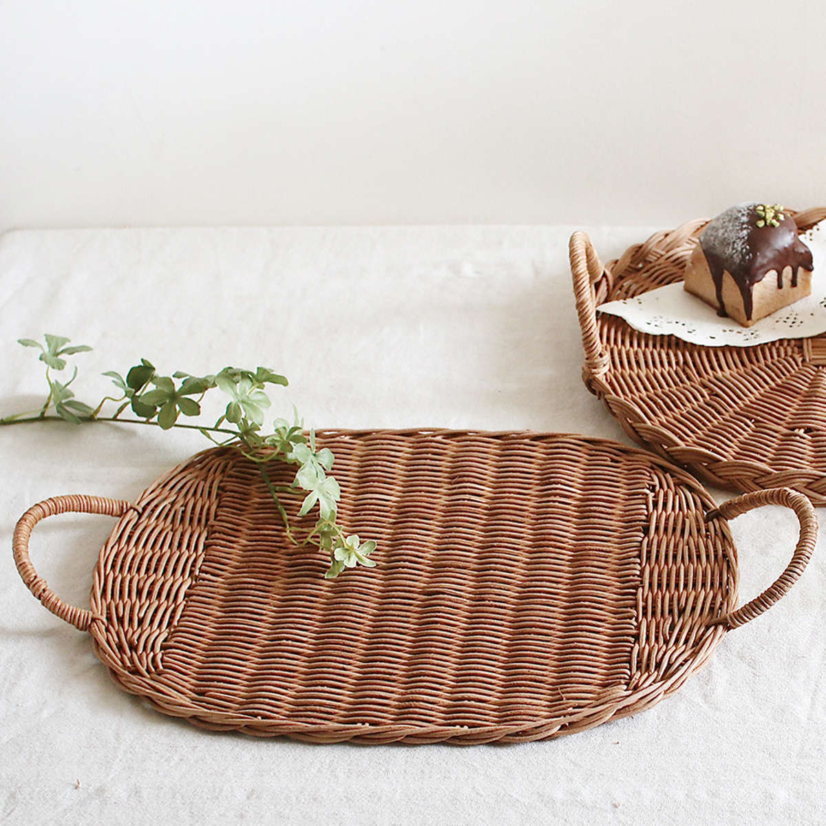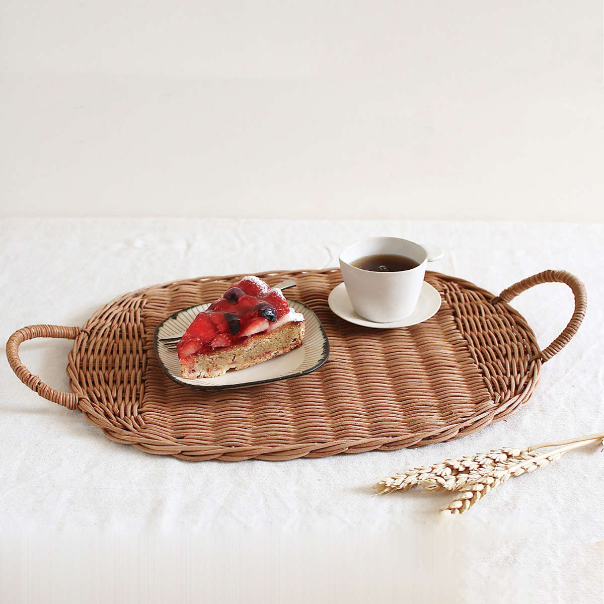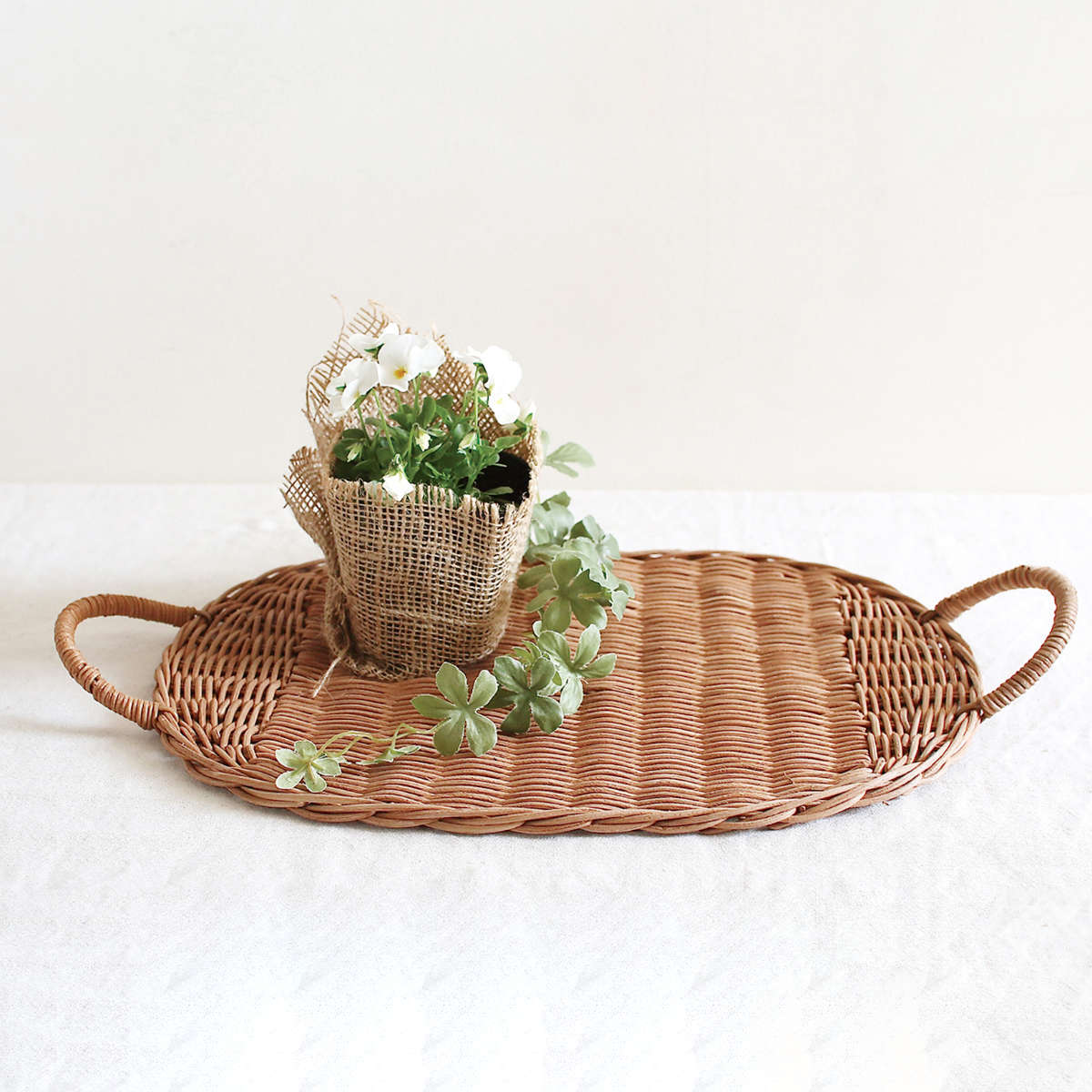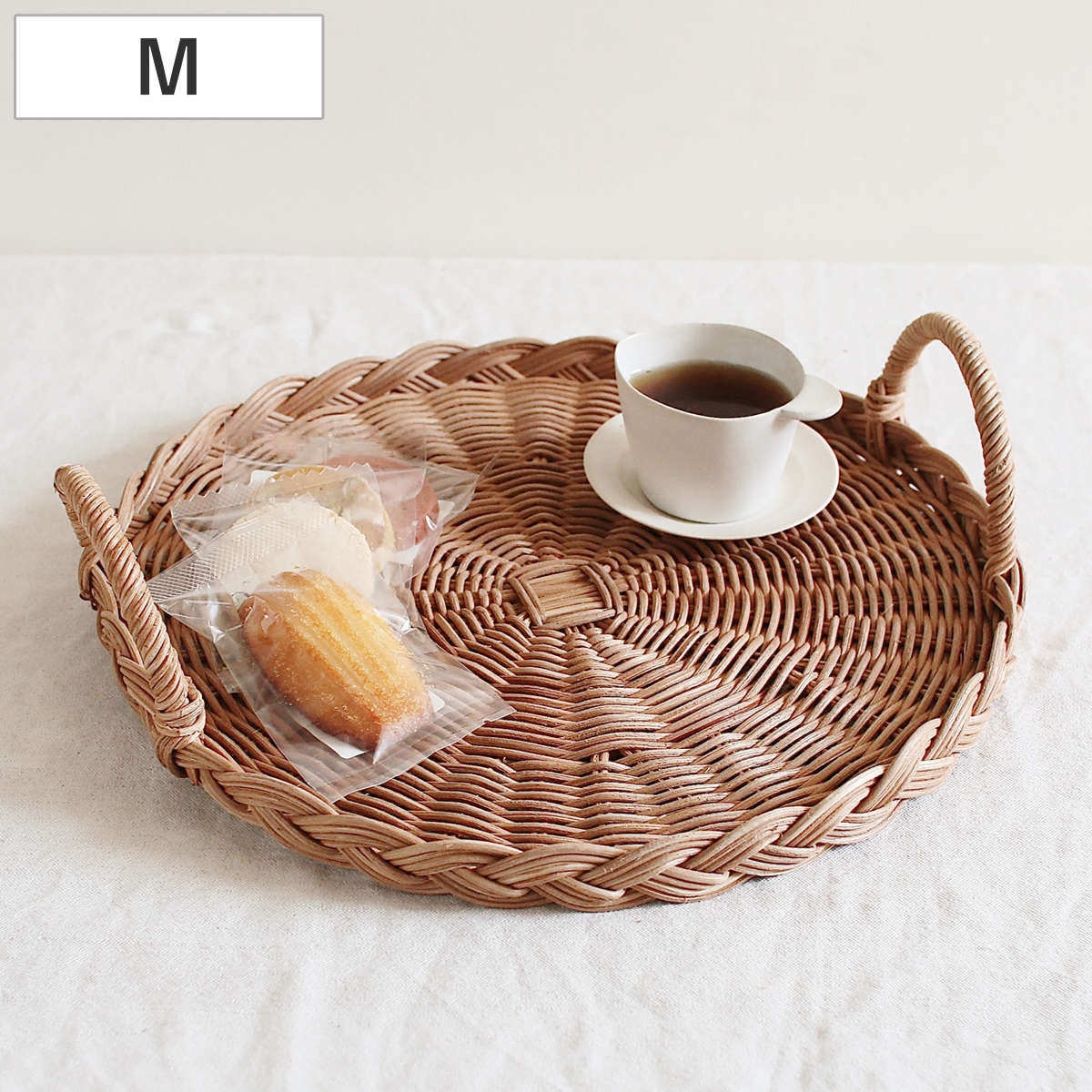 ラタンは軽量で扱いやすく、持ち運びや移動がしやすいのが魅力です。日常のちょっとした場面で気軽に使えるトレイとして、ストレスなく扱えます。