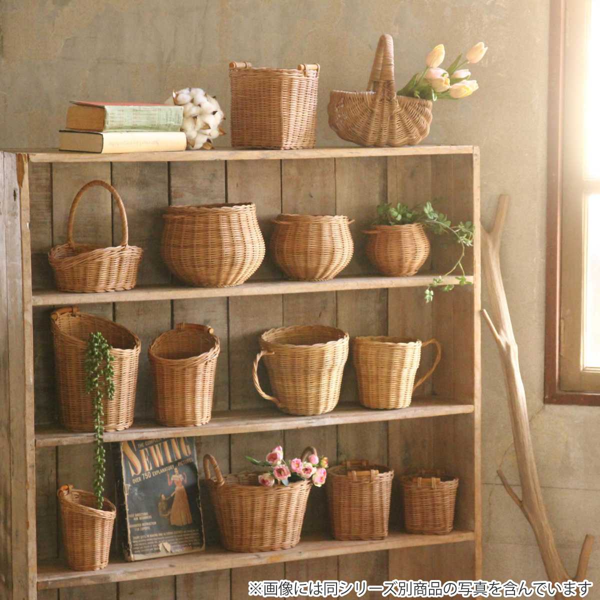 あたたかみのある風合いが魅力で、置くだけで空間にやさしい雰囲気を添えるポットバスケットです。リビングや玄関、キッチンなど、どこに置いても使いやすいMサイズです。