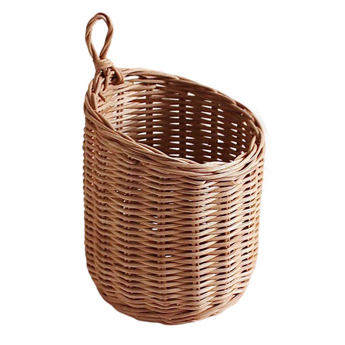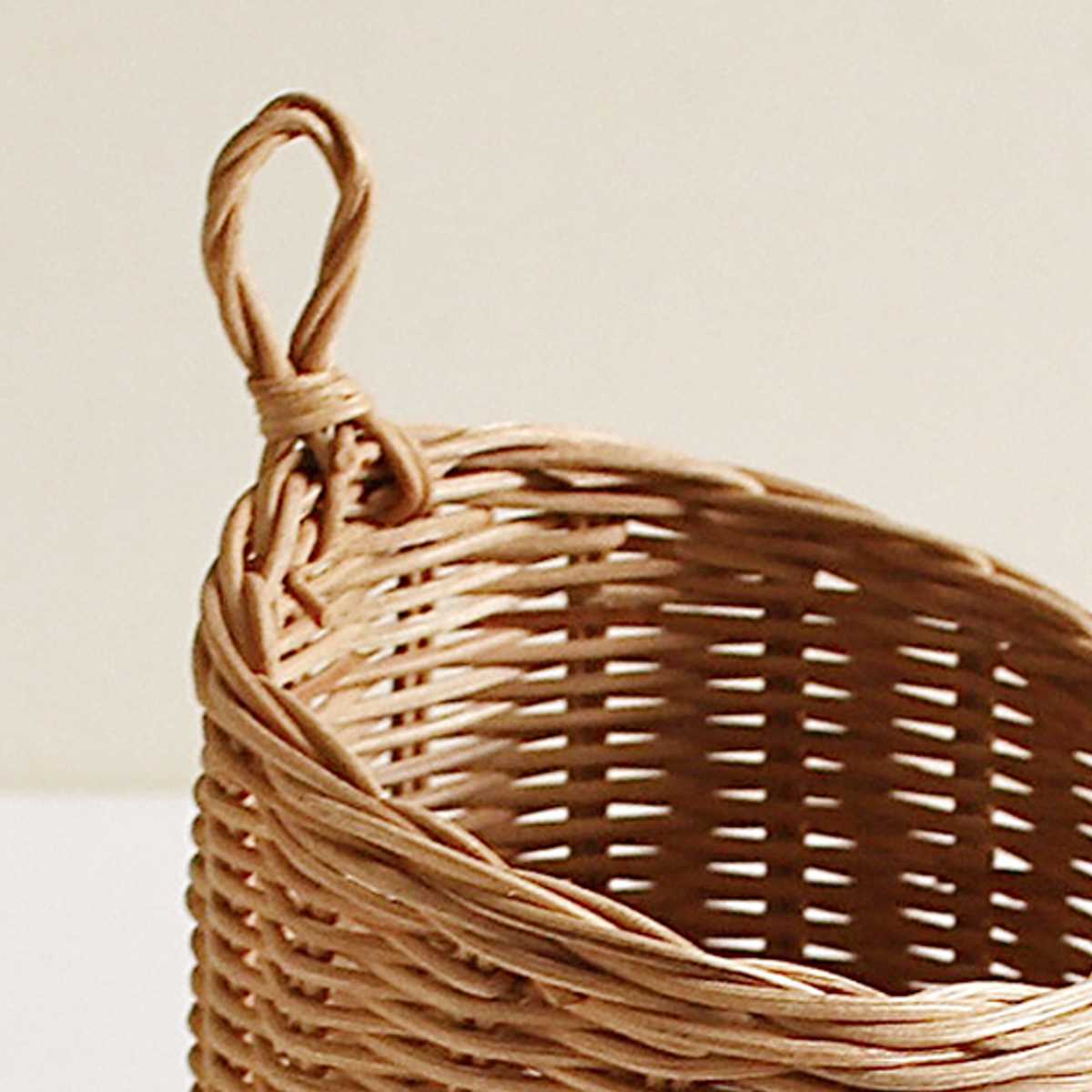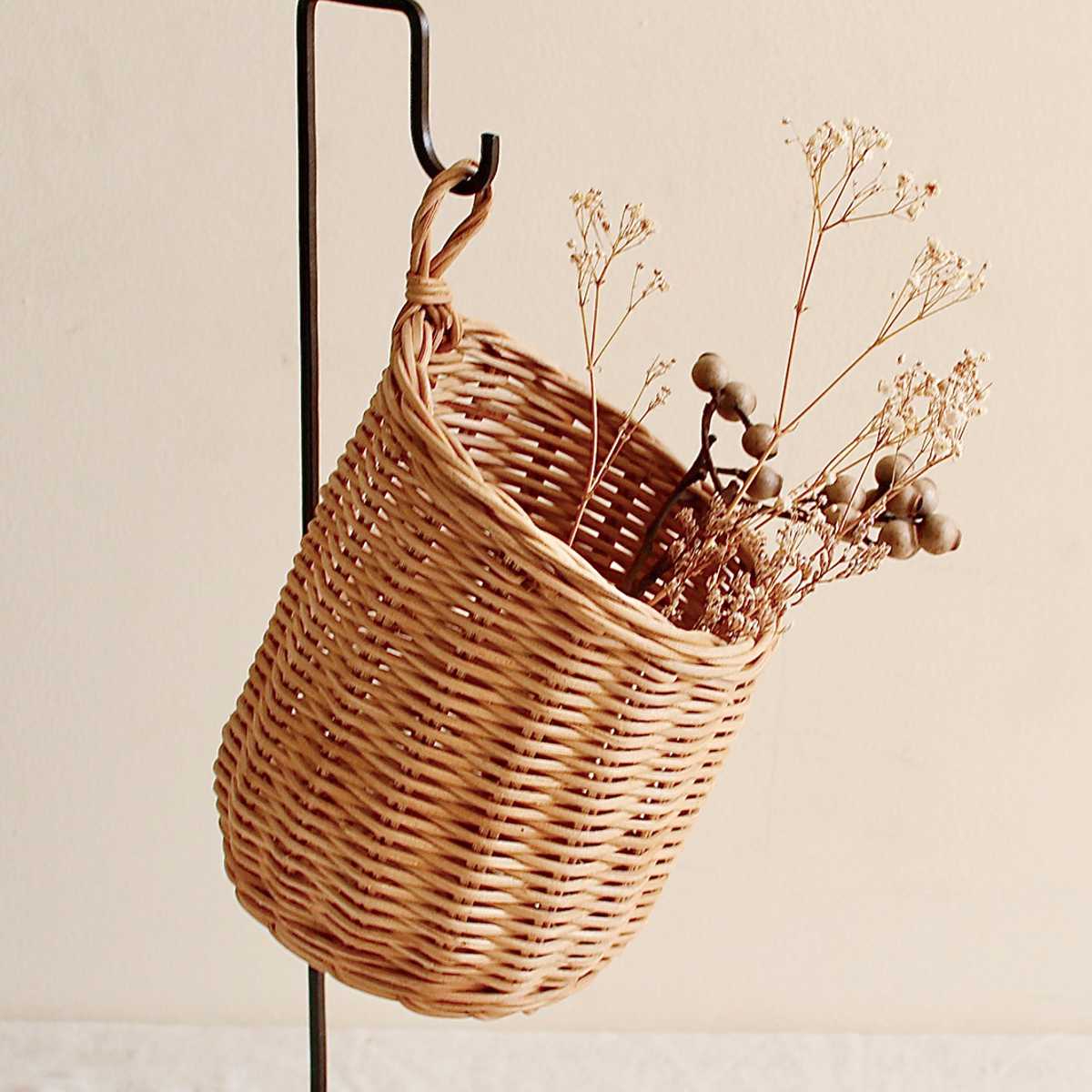 天然素材のラタンを使用した、ナチュラルな雰囲気が魅力のハンギング可能なバスケットです。壁やフックに吊るすだけで省スペースに飾ることができ、空間を立体的におしゃれに演出します。