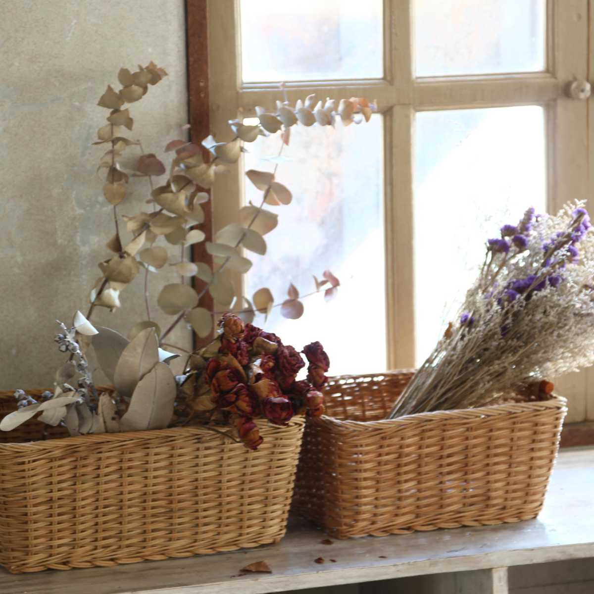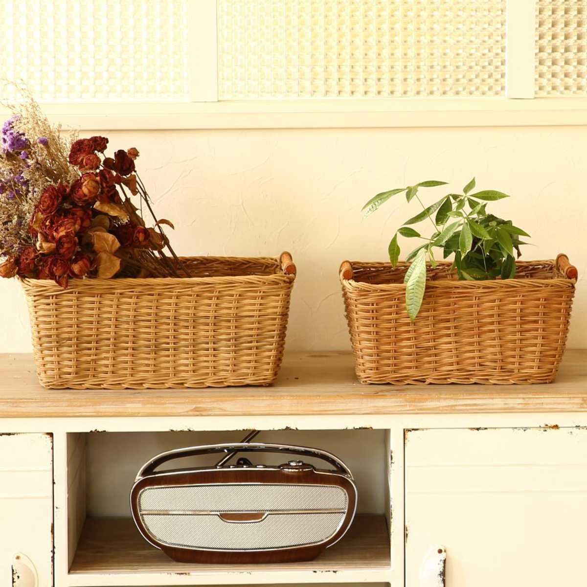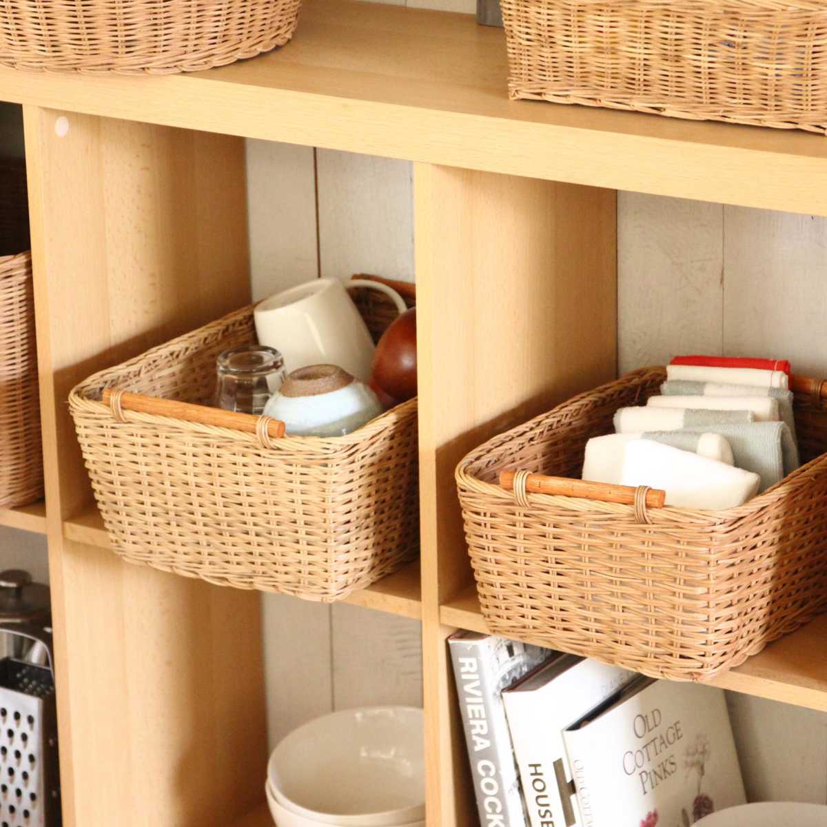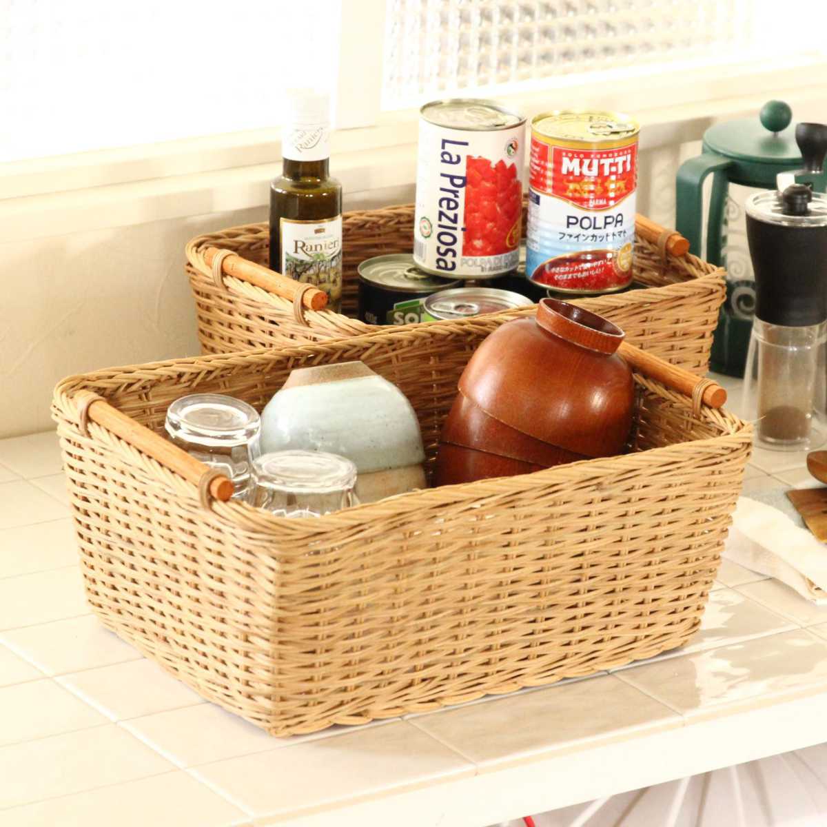 ラタンは軽量で扱いやすく、持ち運びや移動がしやすいのが特長です。通気性にも優れているため、食品や布物、植物などさまざまなアイテムを心地よく収納できます。