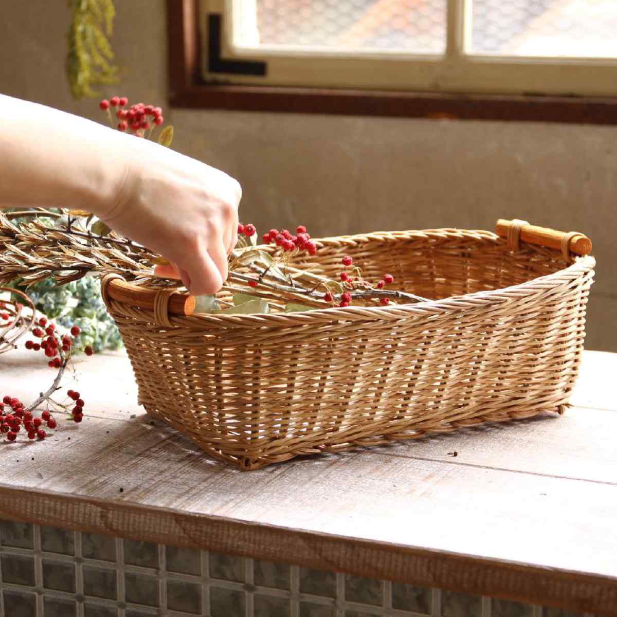 ラタンは軽量で扱いやすく、持ち運びや移動がしやすいのが特長です。通気性にも優れているため、食品や布物、植物などさまざまなアイテムを心地よく収納できます。