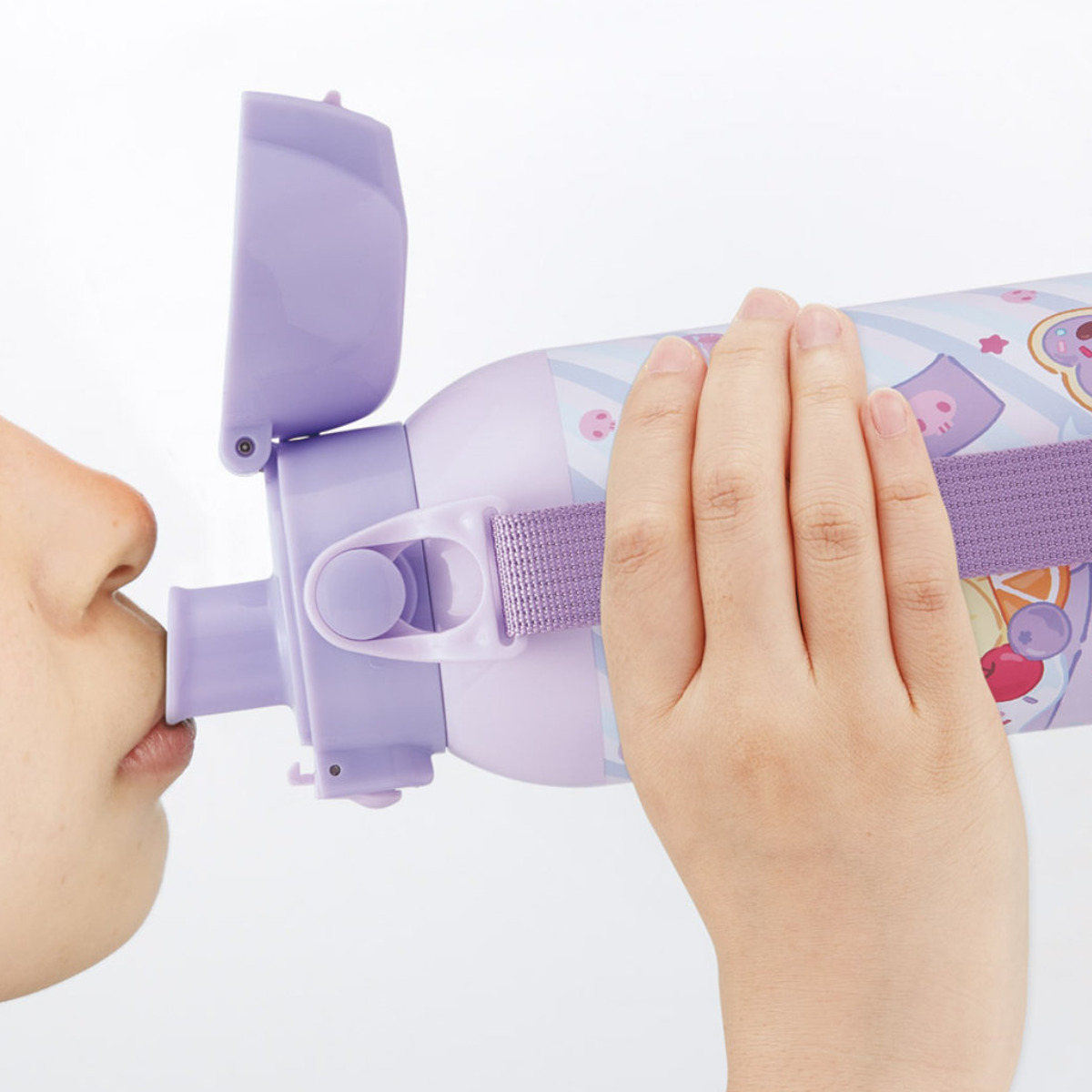 飲む時に蓋が戻らないキャップロック設計。片手で素早くスムーズに水分補給できます。