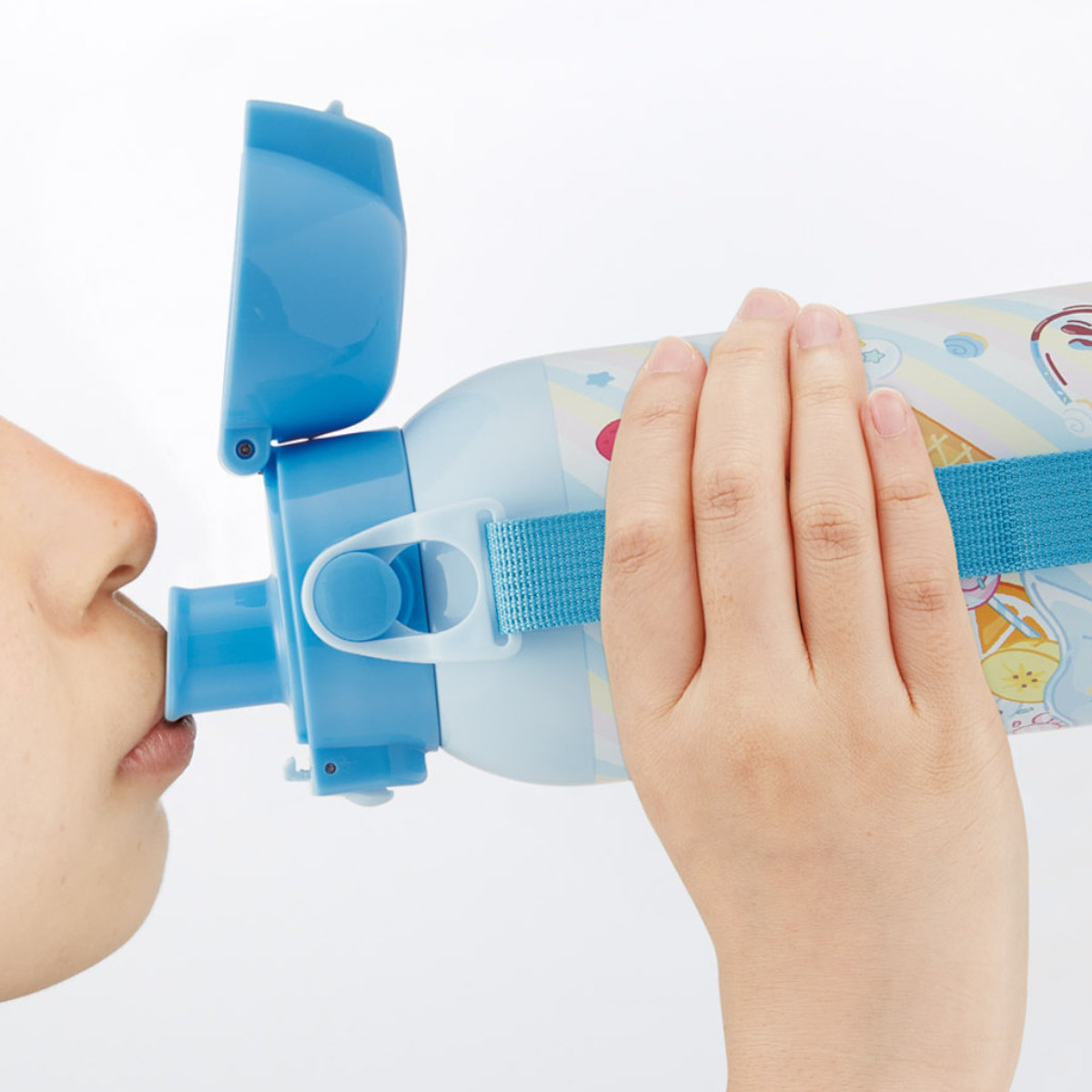 ●水筒の蓋はボタンを押すだけで開けることができるワンタッチ式です。