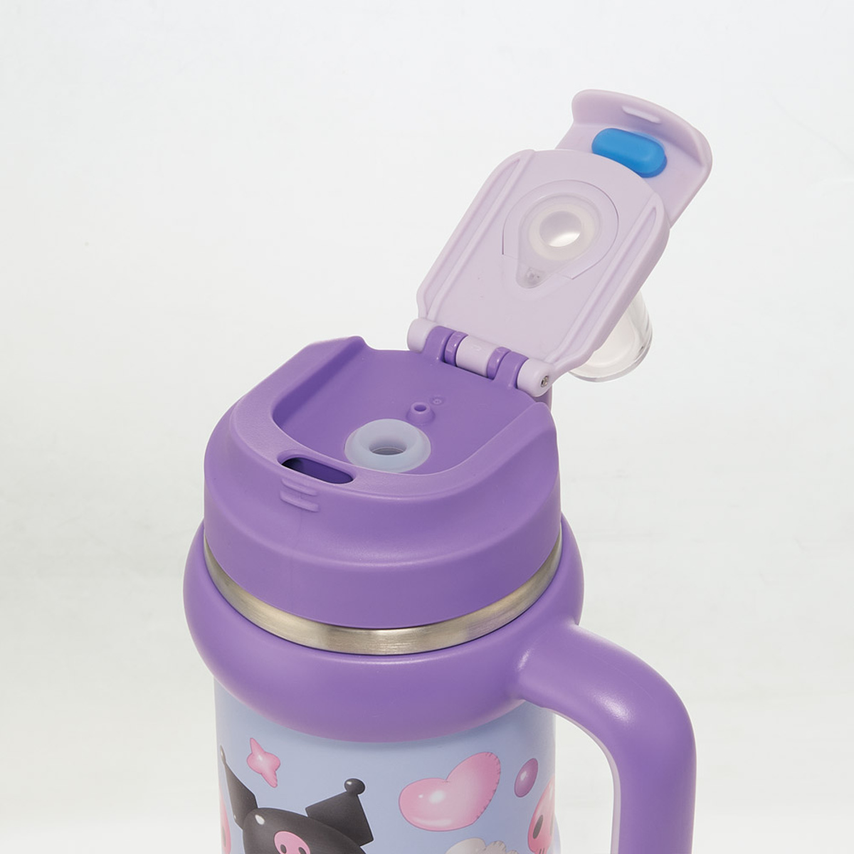 | 材質 | 本体内側・口がね・バネ:ステンレス鋼 本体外側:ステンレス鋼(アクリル樹脂塗装) ストロー飲み口・パッキン・底板:シリコーンゴム 飲み口キャップ:飽和ポリエステル樹脂、熱可塑性エラストマー ストロー・蓋・キャップ:ポリプロピレン ハンドル:ポリプロピレン・熱可塑性エラストマー BPAフリー |