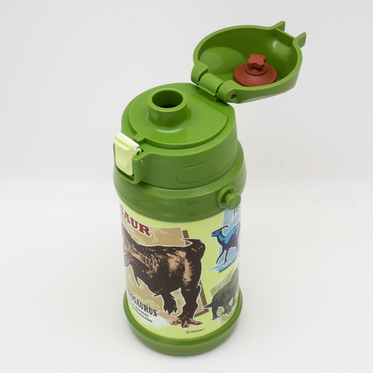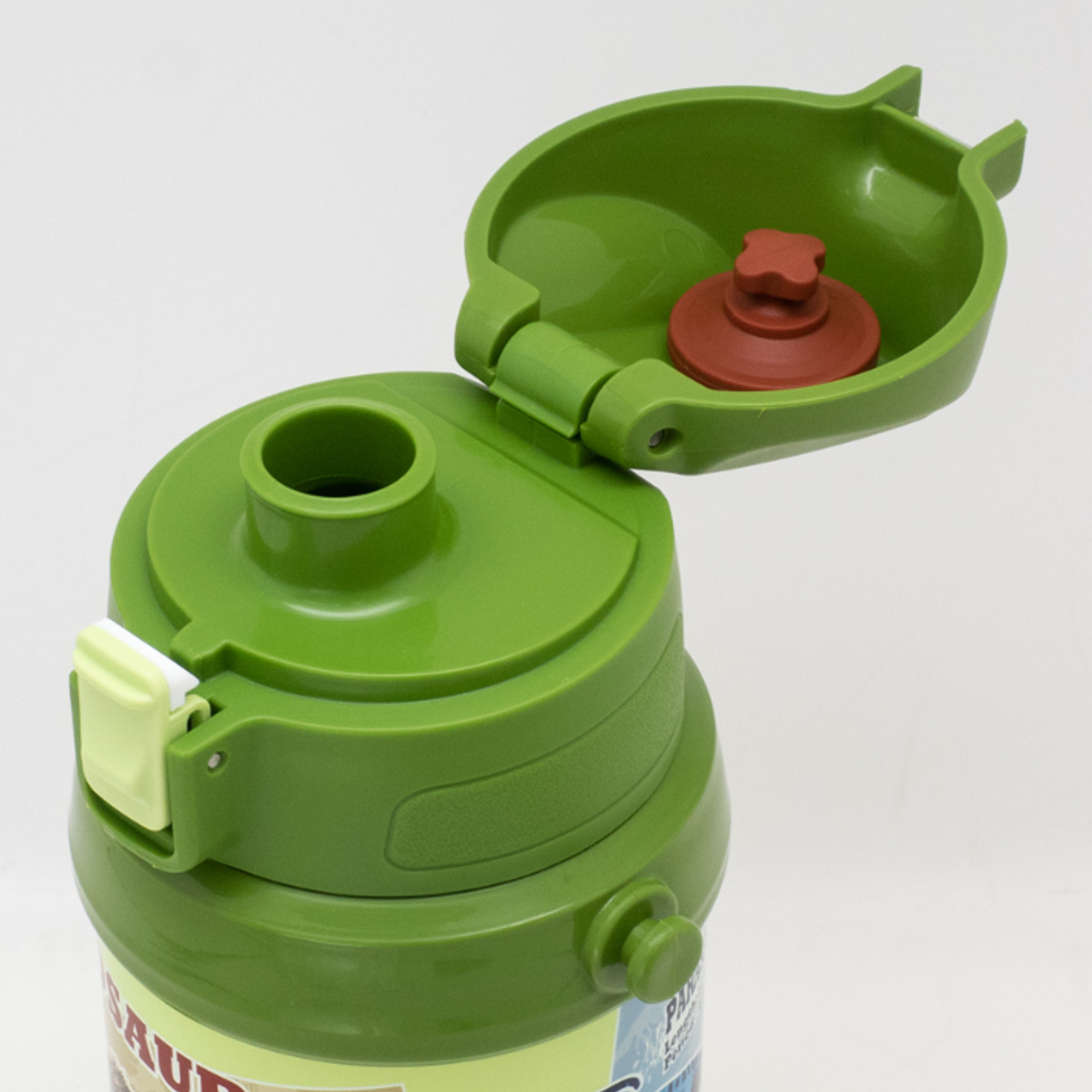 水筒の蓋はボタンを押すだけで開けることができるワンタッチ式なので小さなお子様でも簡単に開けられます。 ロック機能付きで持ち運びにも安心です。