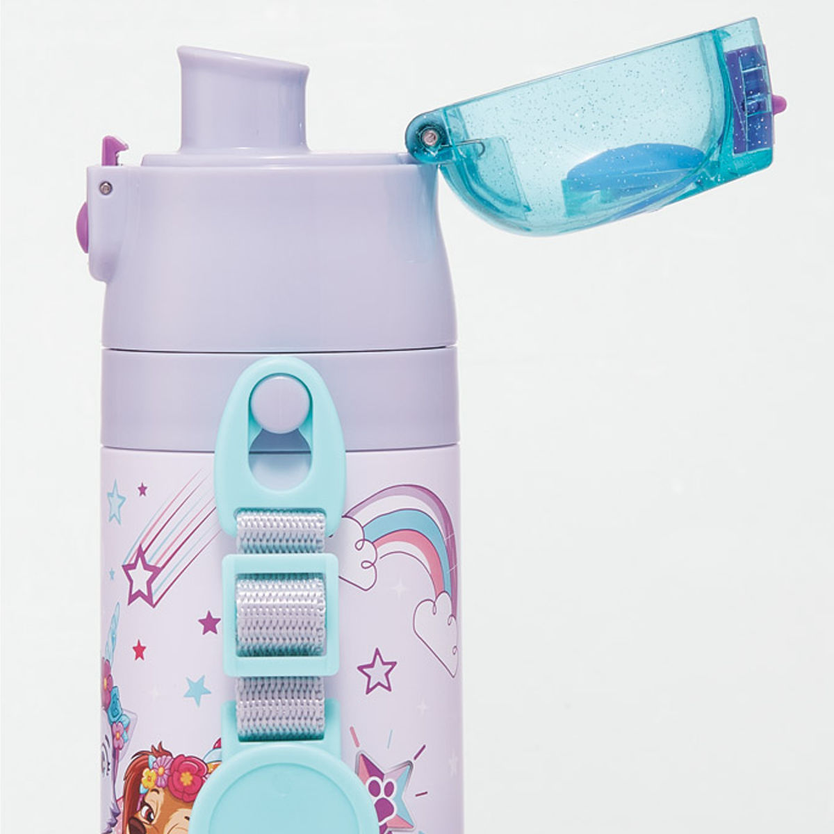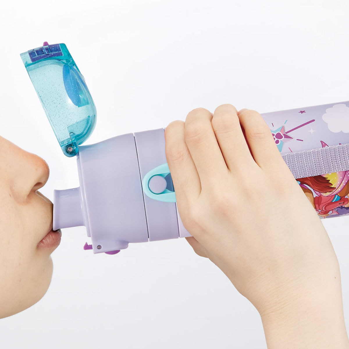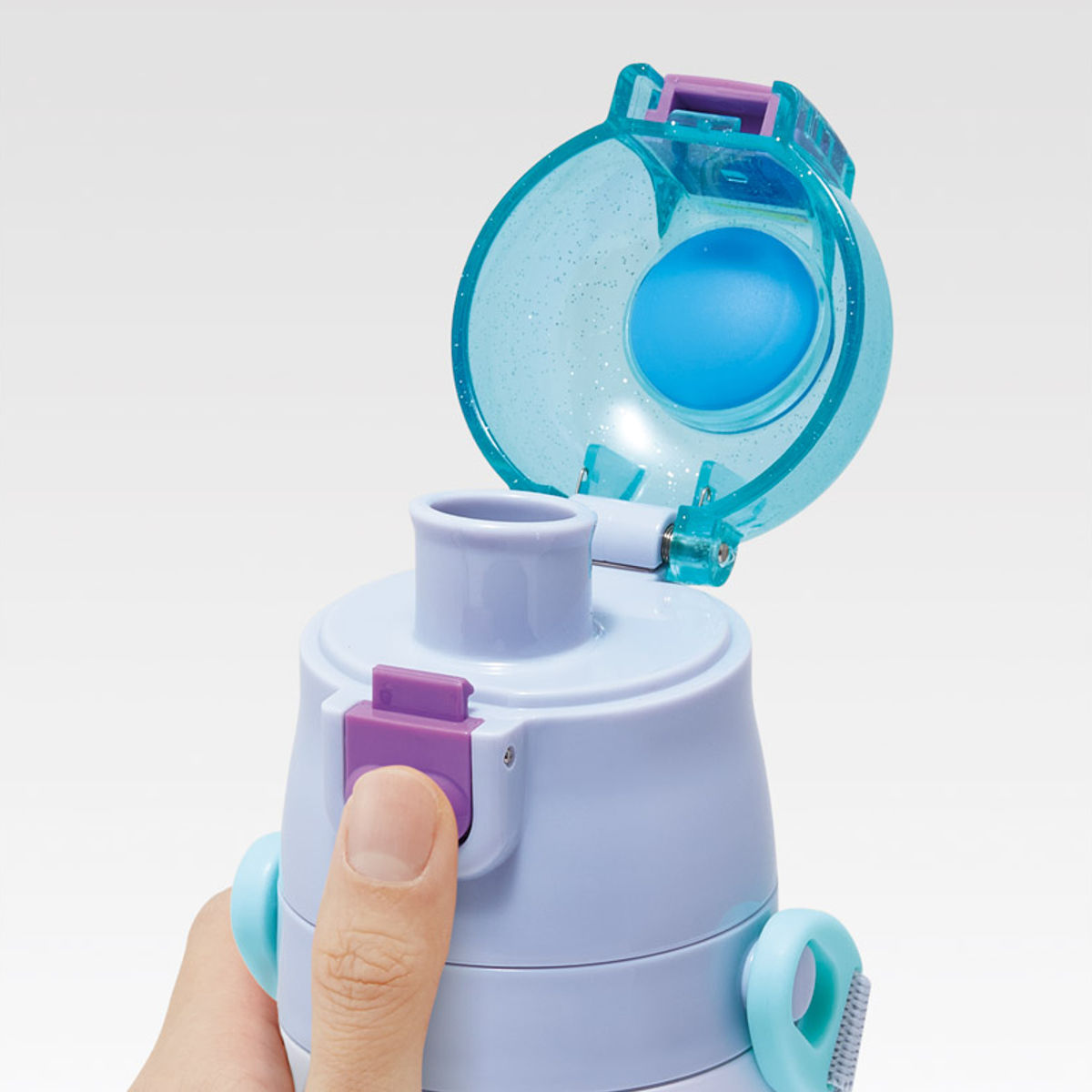 水筒の蓋はボタンを押すだけで開けることができるワンタッチ式です。飲み終わったら蓋をカチッと閉めるだけなので、小さなお子さまでも簡単に開閉できます。