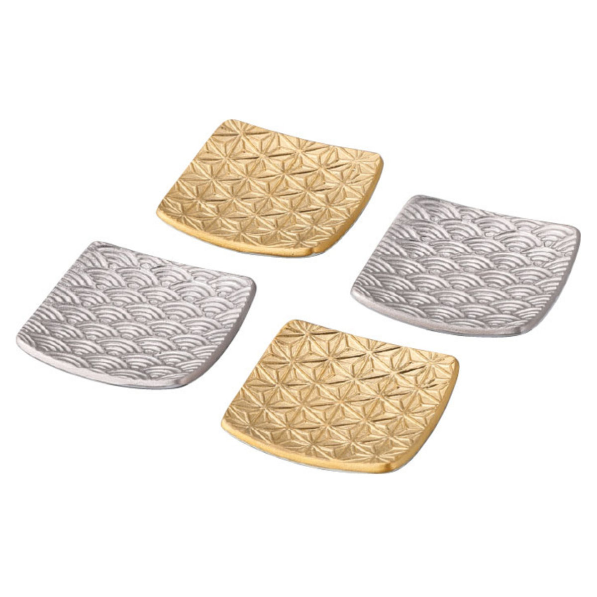 「黄金の国ジパング」をイメージした、華やかで上品な箸置き4個セットです。日本の伝統柄である麻の葉と青海波を繊細な彫刻で表現し、金やプラチナで美しく装飾しています。食卓にさりげない高級感を添え、贈り物や記念品にもおすすめです。