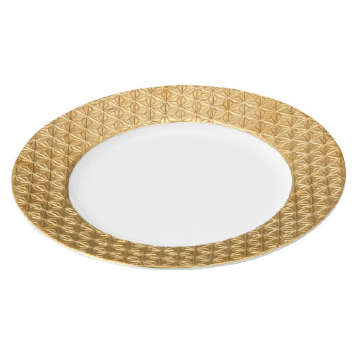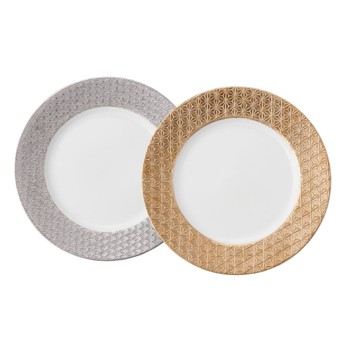 「黄金の国ジパング」をイメージした、華やかで上品なディナープレートセットです。日本の伝統柄である麻の葉と青海波を繊細な彫刻で表現し、金やプラチナで美しく装飾しています。27.5cmの大きめサイズは、メインディッシュやしっかりした一人分の食事にぴったりです。透き通るような白磁が料理をいっそう引き立て、ハレの日の食卓やお祝いの贈り物にも最適です。