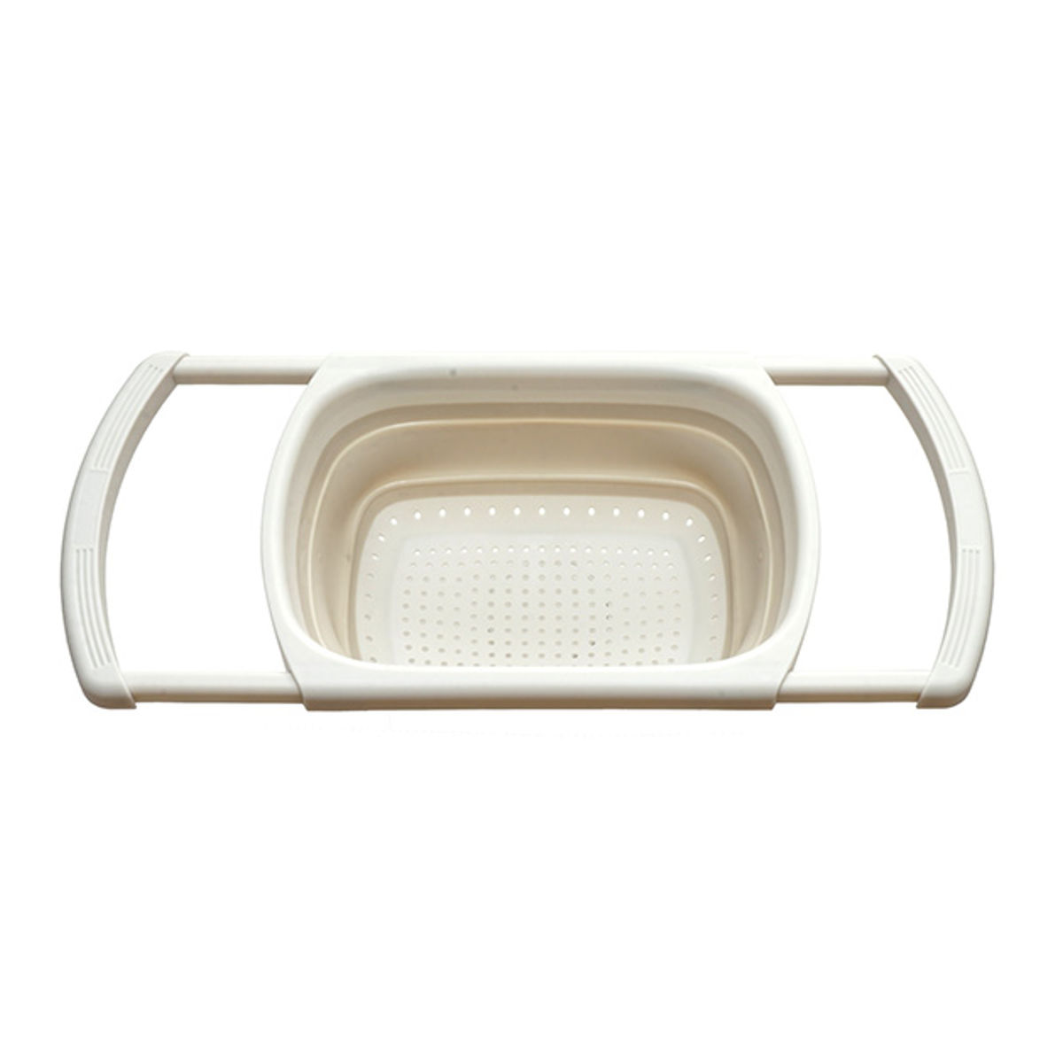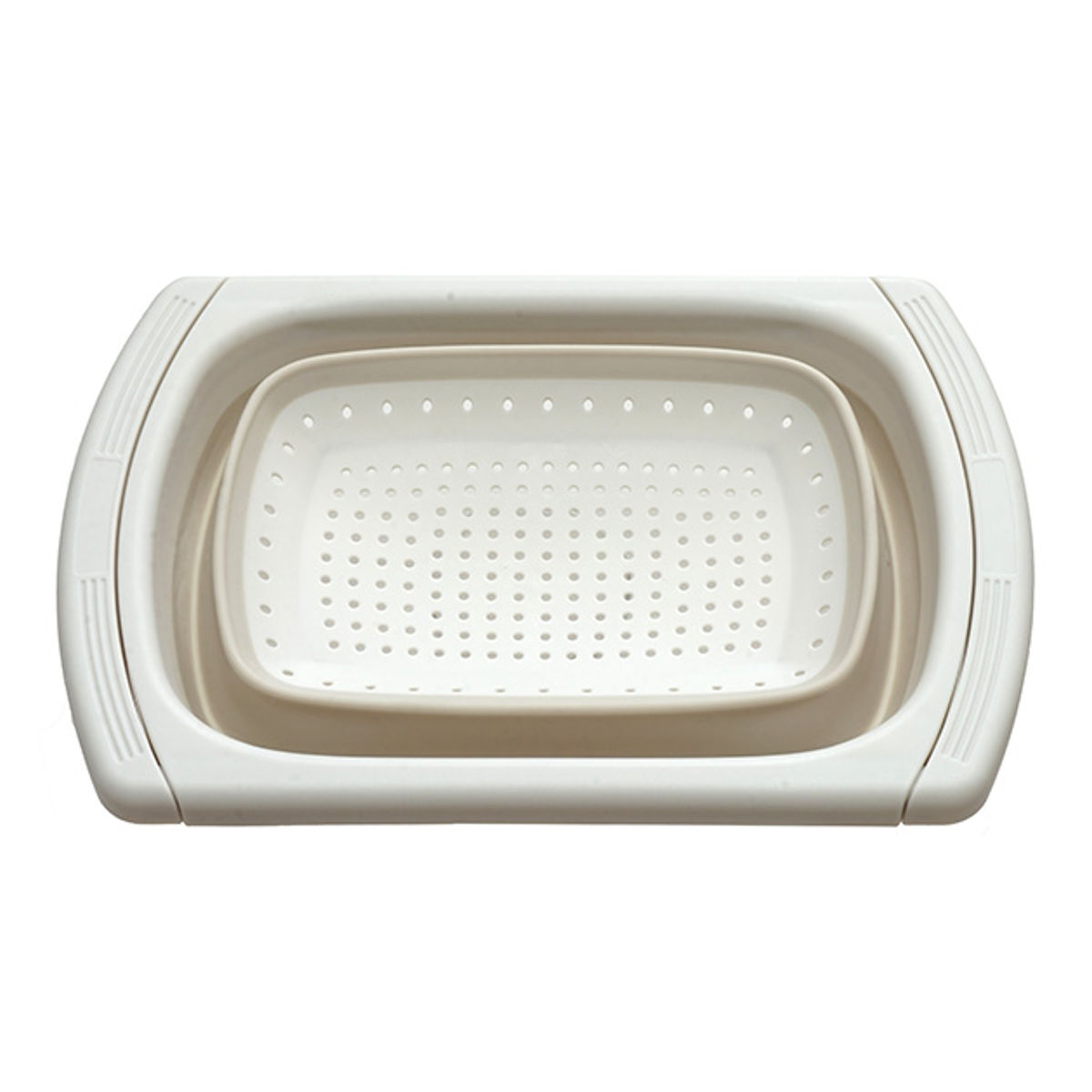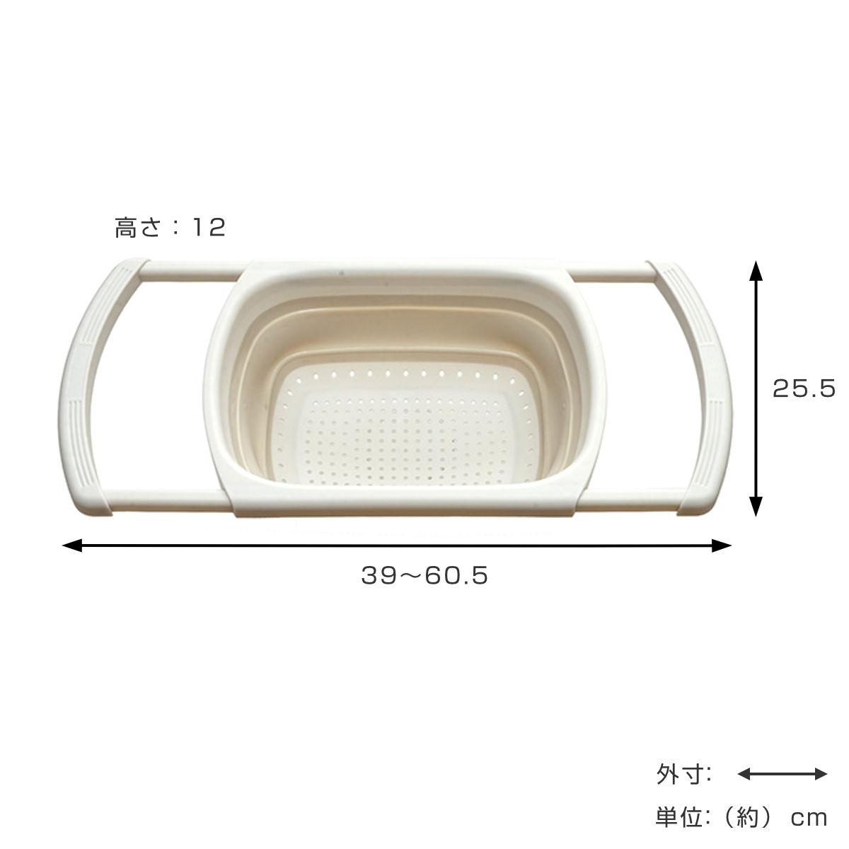 シンクに合わせて幅を調整できる水切りカゴです。食器の水切りに便利で、使わないときは折りたたんでコンパクトに収納できます。