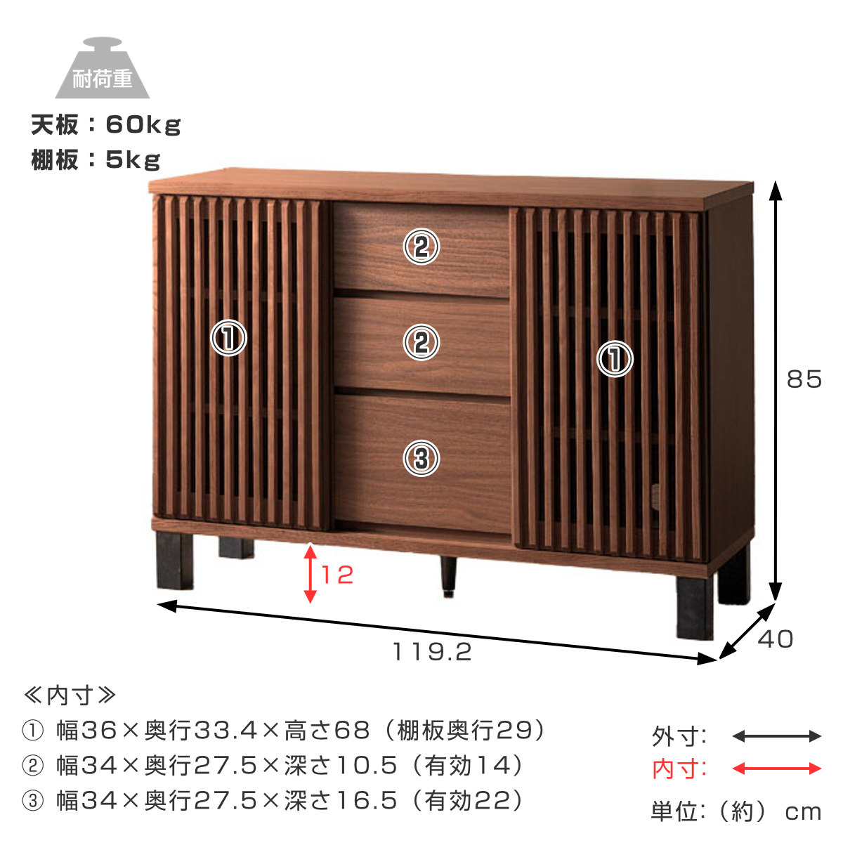 | サイズ | 約 幅119.2×奥行40×高さ85(cm) |