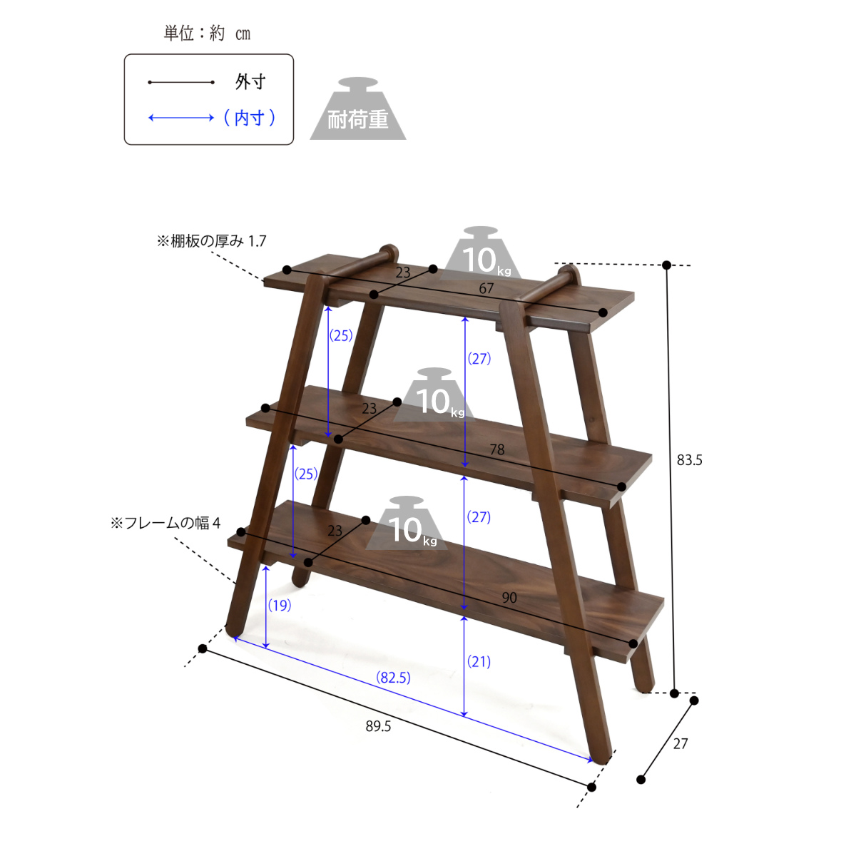 | 棚板1枚あたり耐荷重 | 10kg |