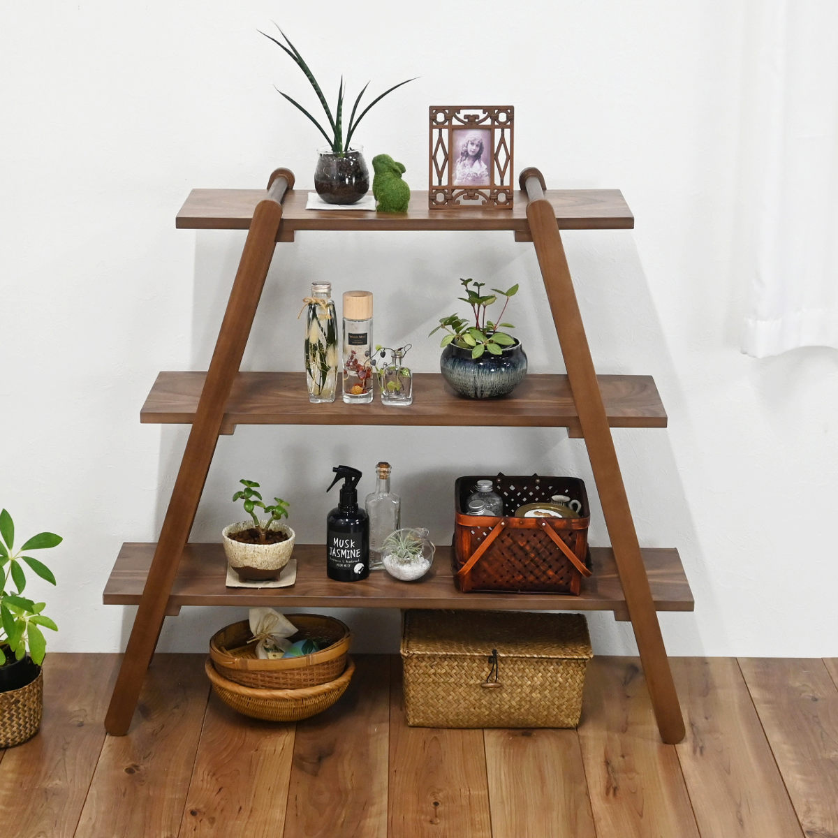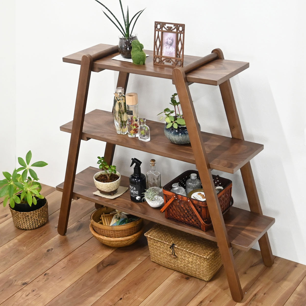 お気に入りの雑貨やグリーンを飾るだけで、お部屋をセンスよく演出するオープンラックです。木目の美しさとあたたかみのある質感が、お部屋にナチュラルな雰囲気をプラスします。使うほどに味わいが増し、長く愛用いただけます。