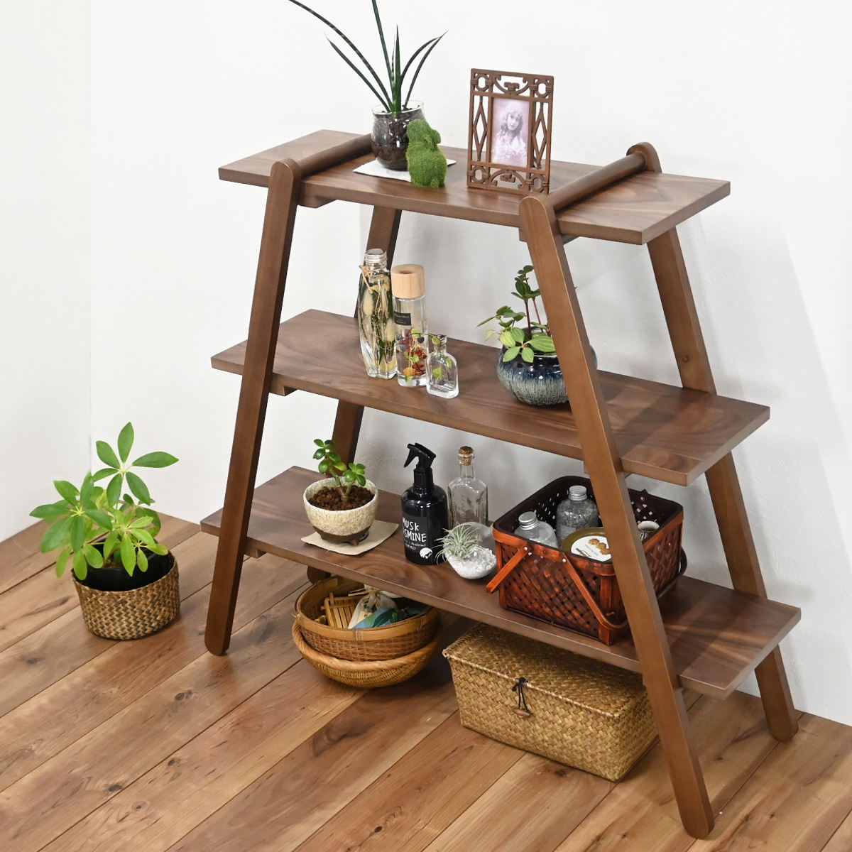 天然木の風合いを活かしたオープンラック 3段