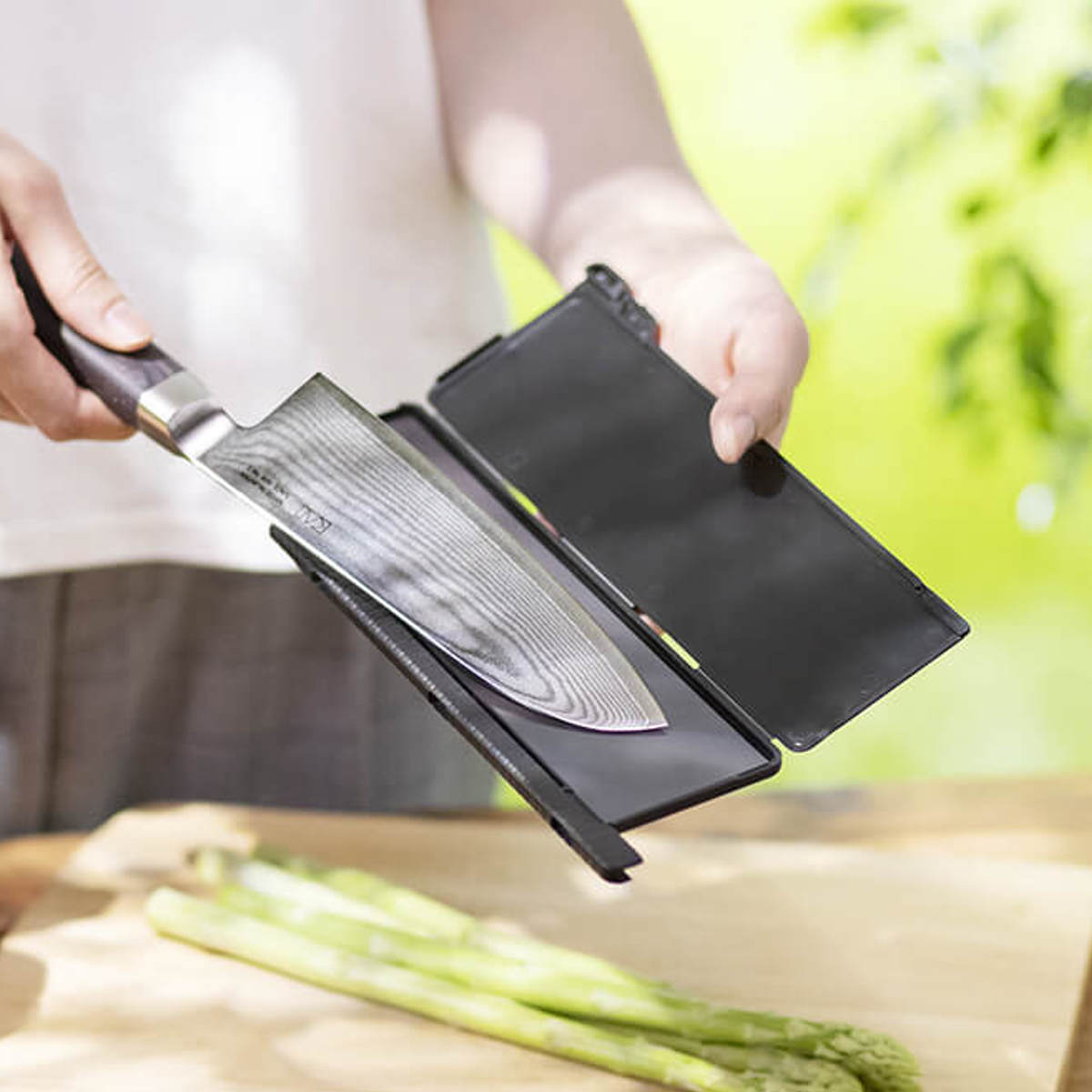 安全に包丁を収納できるダブルロック構造のブレードガード