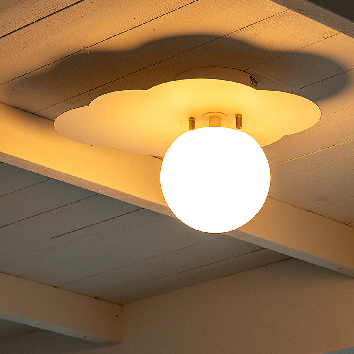 フロストシェードが光をふんわりと拡散し、まぶしさを抑えたやさしい光に。 点灯すると雲のフォルムが天井に淡い陰影を描き、 空想的な雰囲気を演出します。