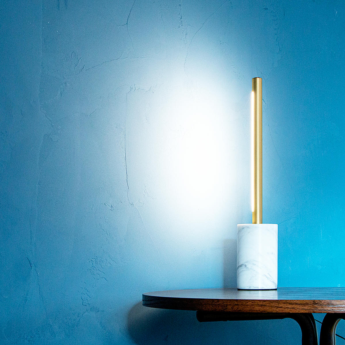 照明器具の直径は約2.5cm。極限まで細くしたスリムなサイズ感は、凛とした佇まいでテレビやソファ横に、ベッドサイドにと場所を選ばず空間にスッと馴染みます。