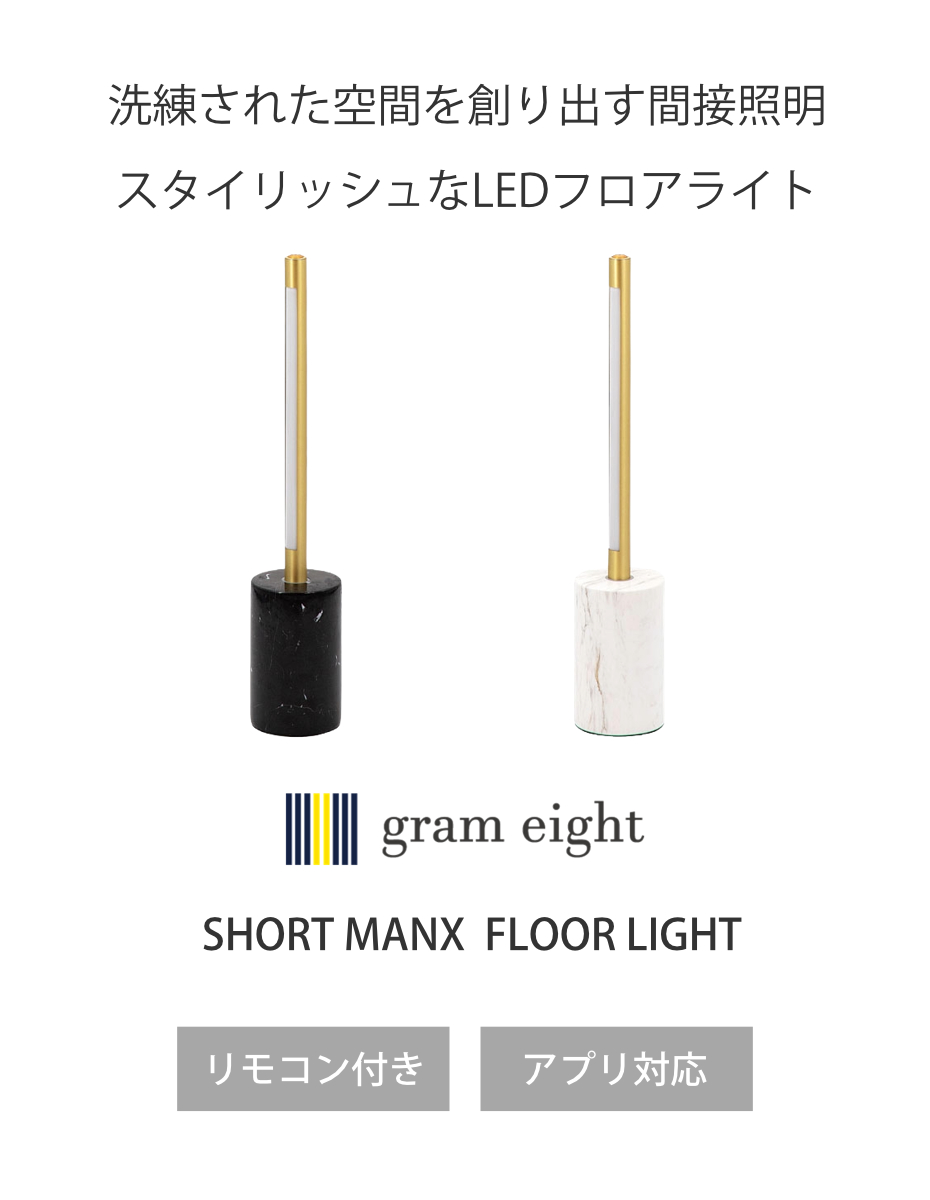 2023年にグッドデザイン賞を受賞したLEDバーライト NEO MANX (ネオマンクス)をコンパクトサイズに仕上げたショートモデル「SHORT MANX (ショートマンクス)」です。 大理石製のたて置きベースとセットになったフロアライトです。