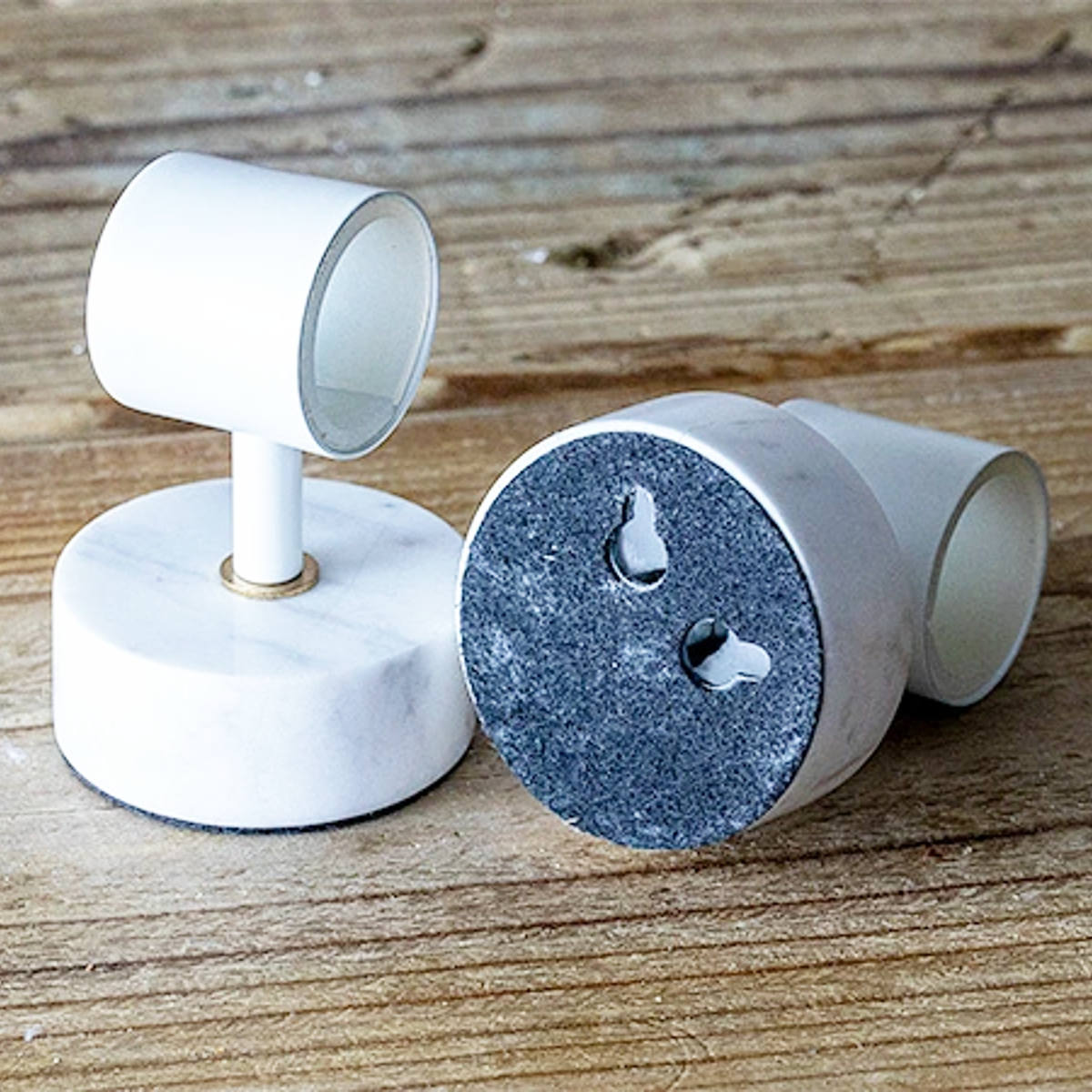壁に取り付けるためのウォールマウント。本体と同色のマウントがセットとなります。取り付け方は壁にビスを打ち、そこに引っ掛けるようなカタチとなります。