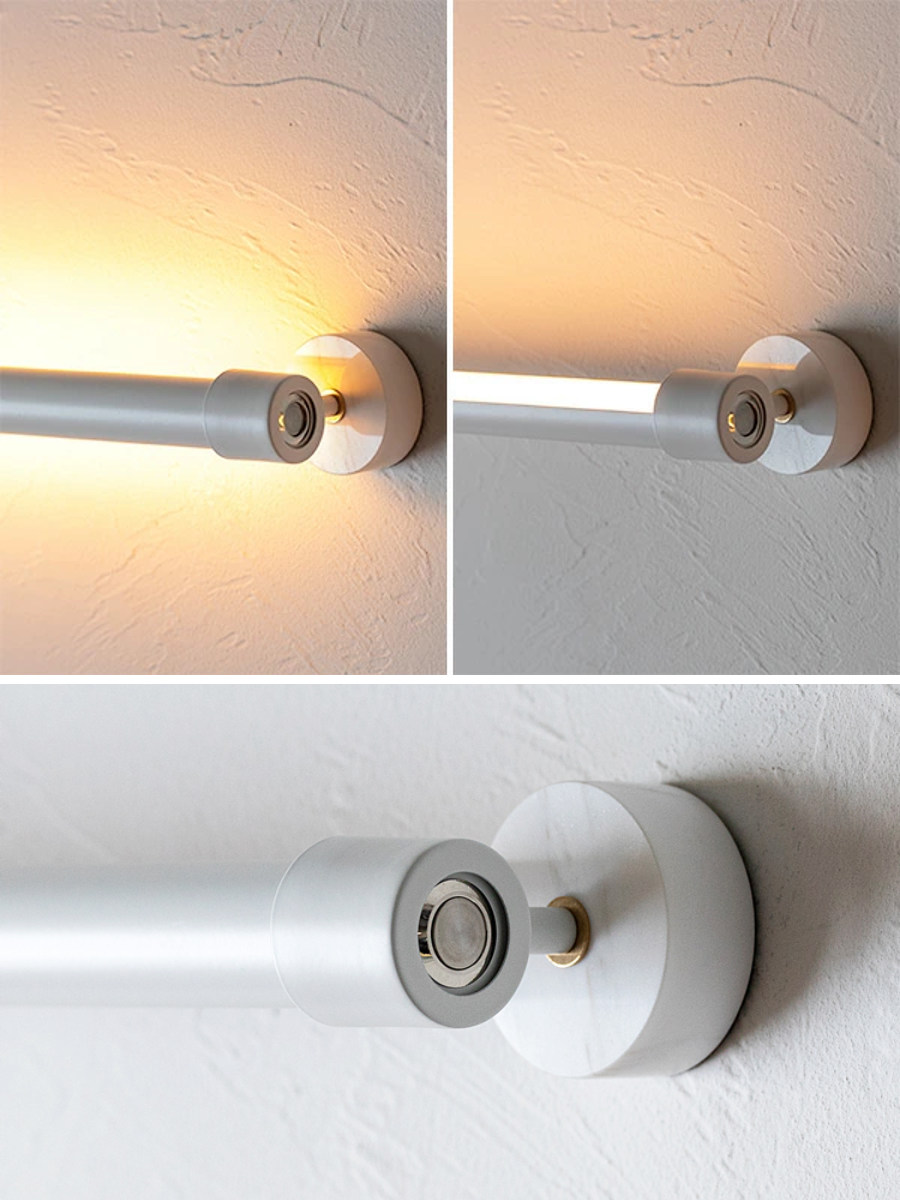 機能性とデザイン性を兼ね備えた、壁に取り付けて使用するウォールライトです。シンプルなデザインが空間に自然に溶け込み、壁面をやさしく照らします。本体は縦向き・横向きどちらでも設置可能です。