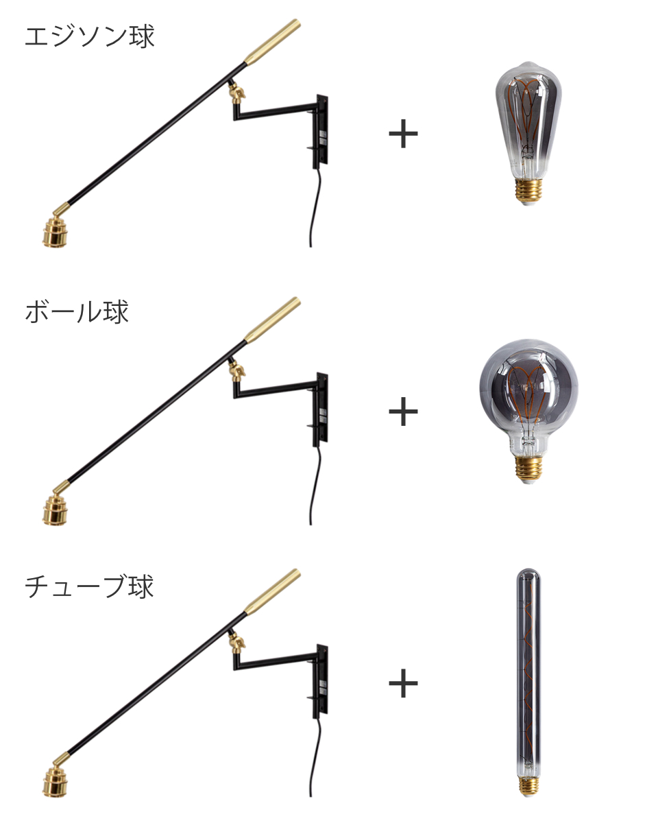 エジソン、ボール、チューブの3種類の形からお選びいただけます。