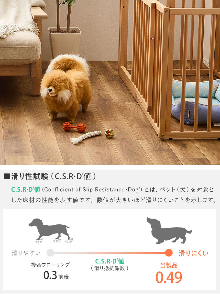 ※ペットの個体差により、C.S.R・D′値に優れた床材でもペットが滑る場合があります。
