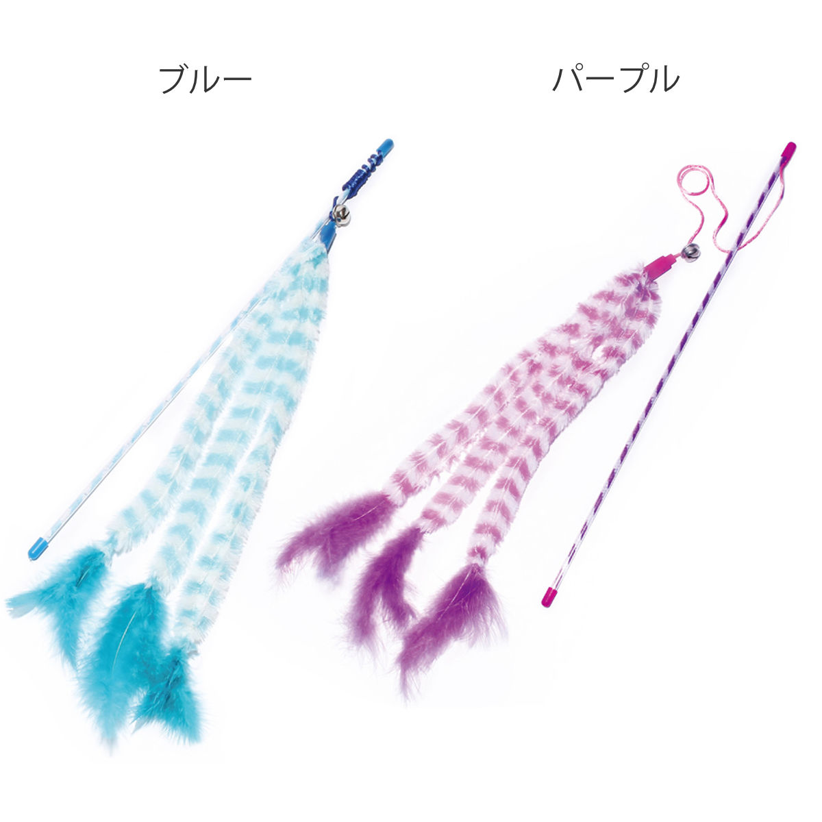 ●縞模様のフワフワ生地と羽根をあしらった3本タイプの猫じゃらしです。