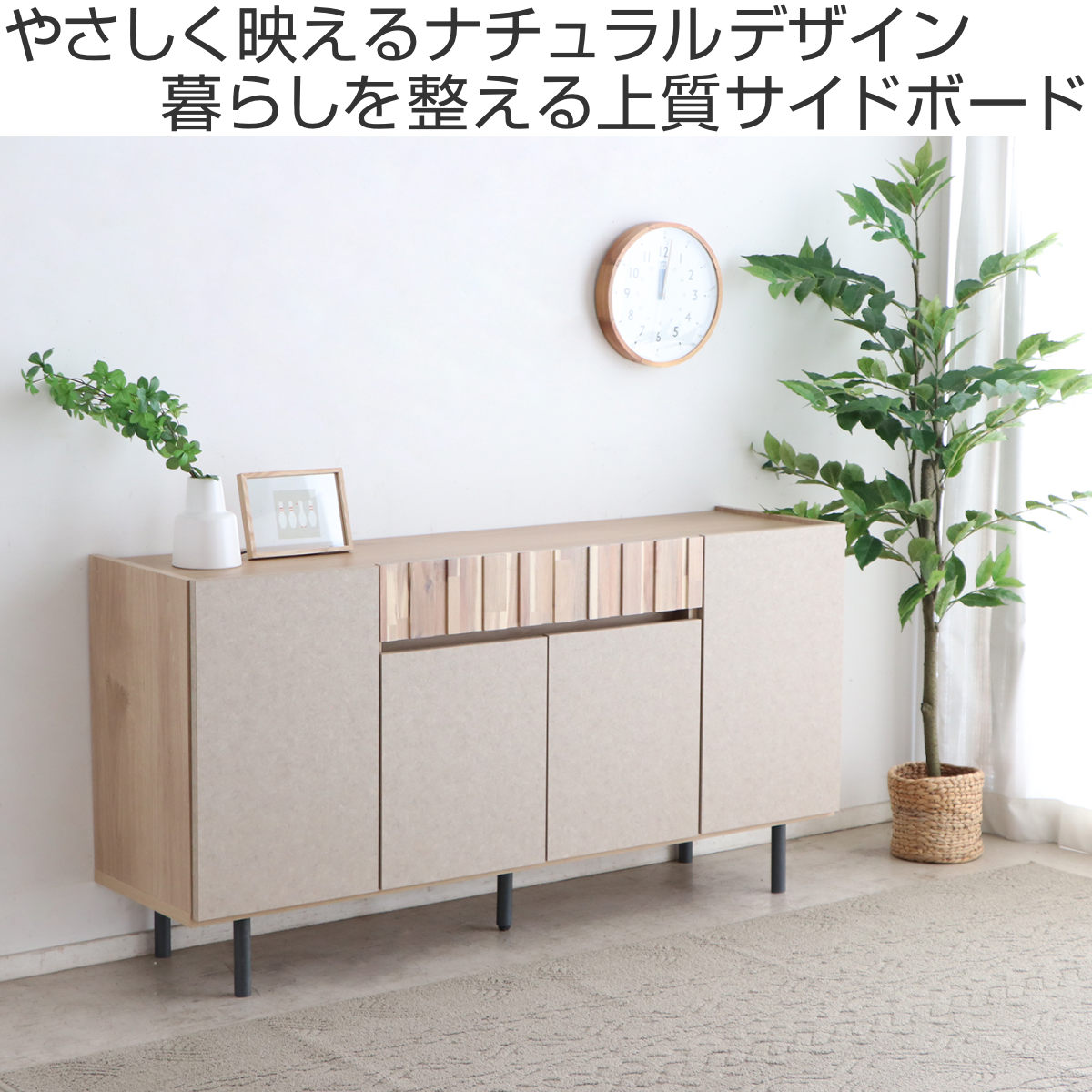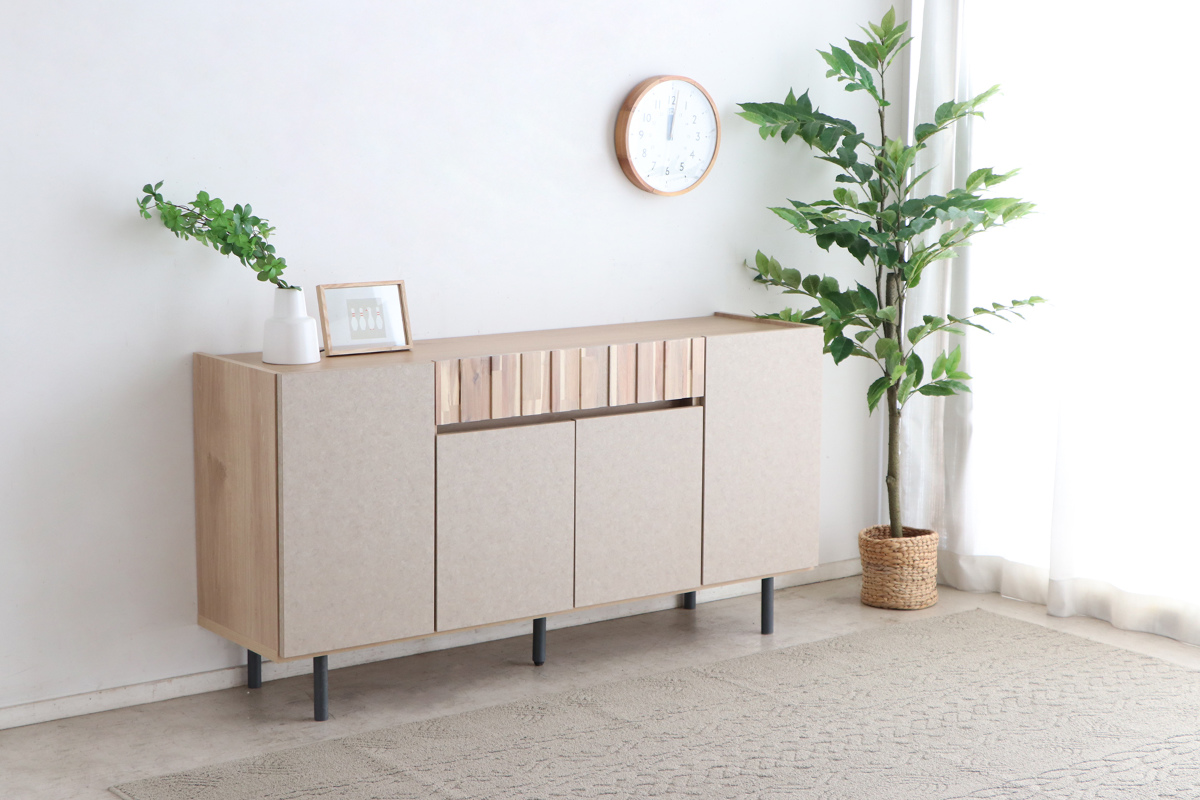 異素材デザインのおしゃれなサイドボード 幅149.5cm