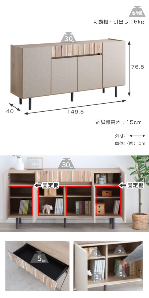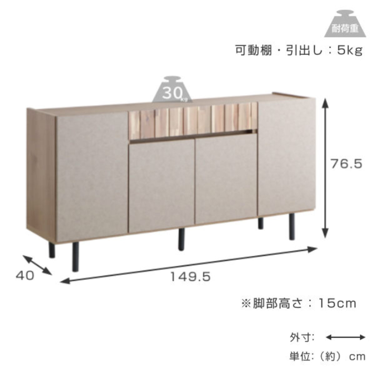 - 約幅149.5×奥行40×高さ76.5cm