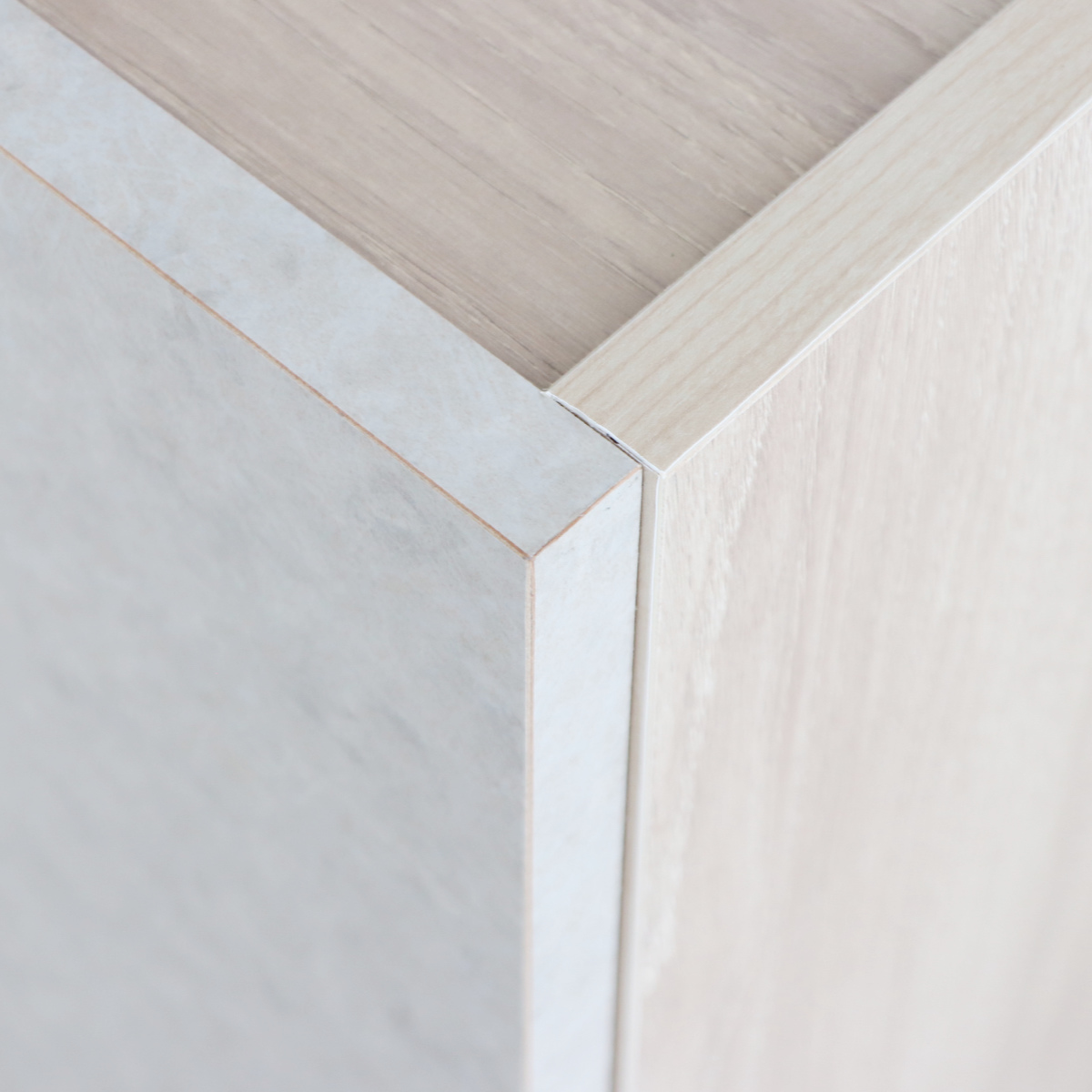 | 材質 | 天板:強化紙化粧板 本体:プリント化粧板 前板:アカシア集成材(ウレタン塗装)・強化紙化粧板 脚部:ラバーウッド無垢(ウレタン塗装) |