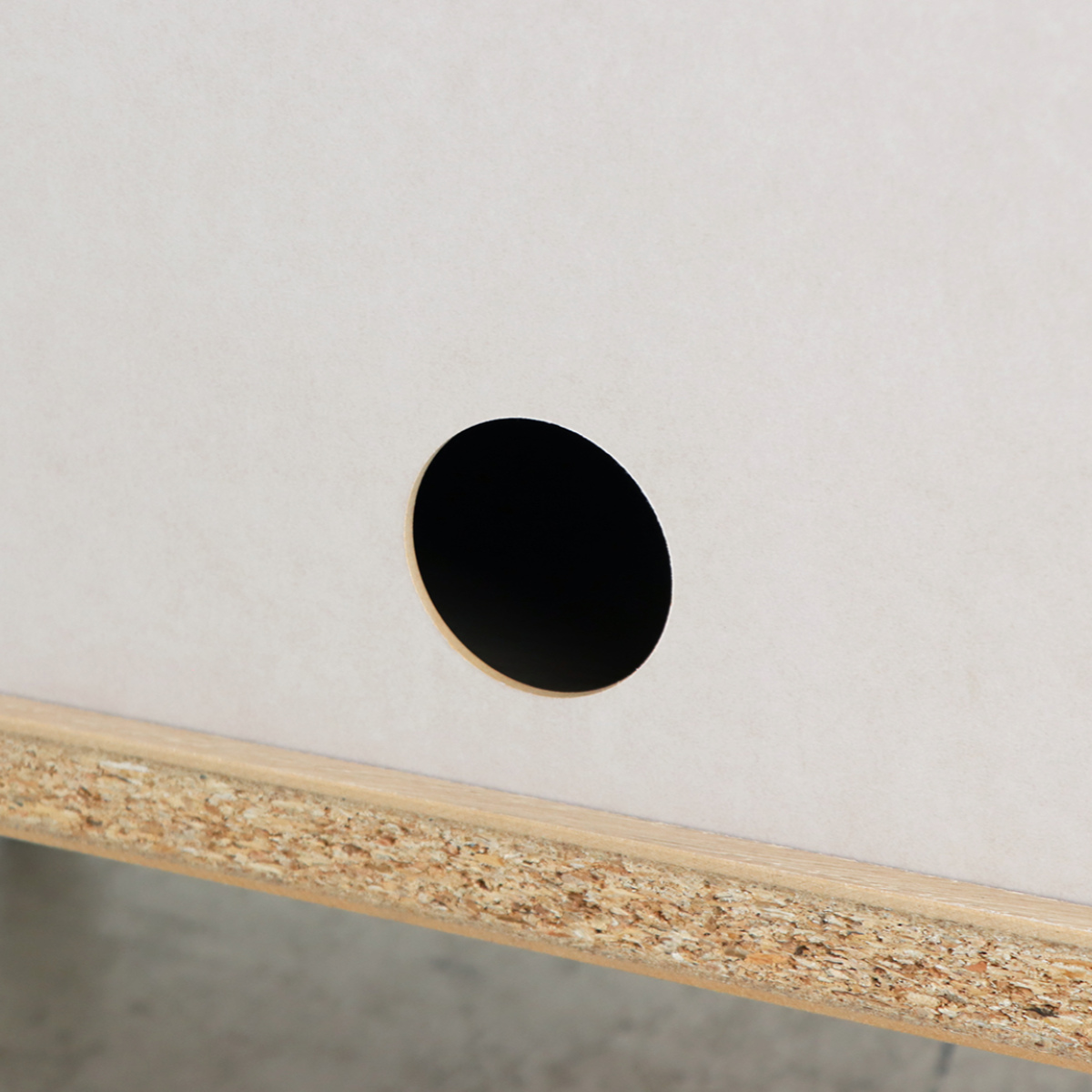 背面には配線穴を設けており、テレビやAV機器のケーブルも整理できます。
