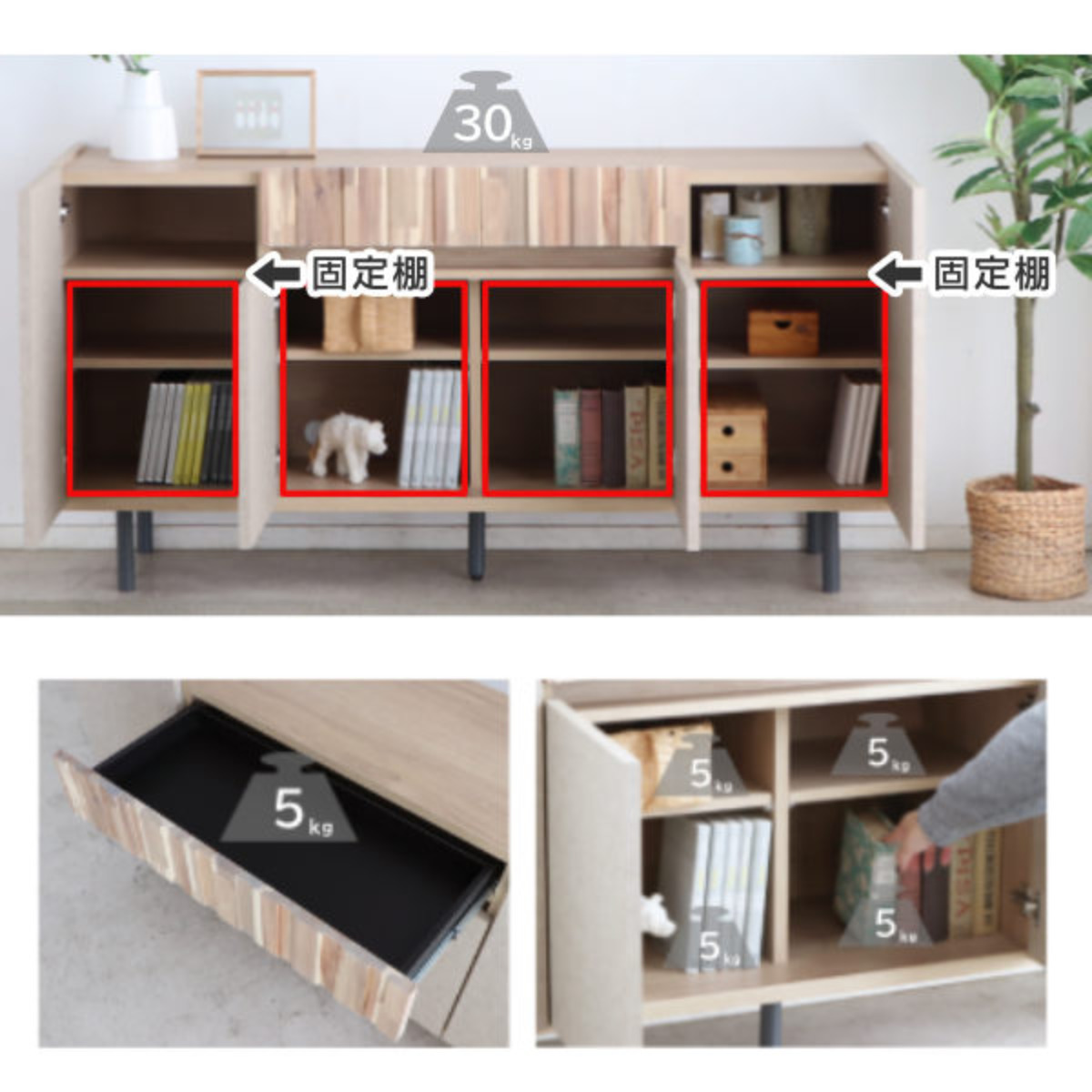 | 引き出し1段あたり耐荷重 | 5kg |