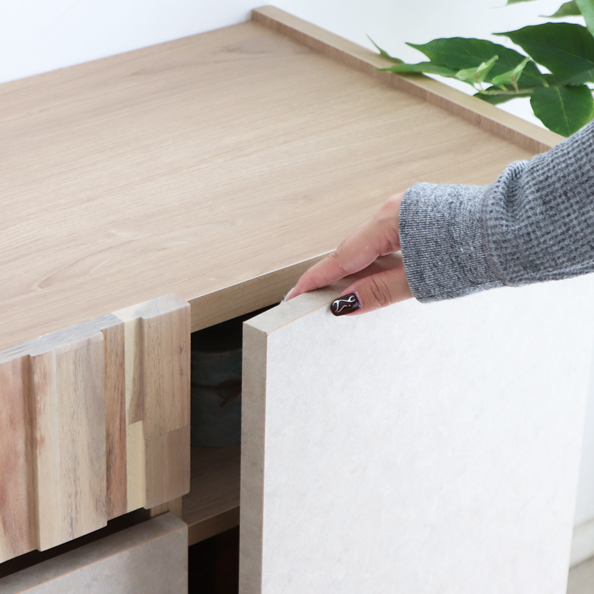 広めの天板には、写真立てや小さなグリーンを置けます。お部屋にさりげない彩りをプラスできます。
