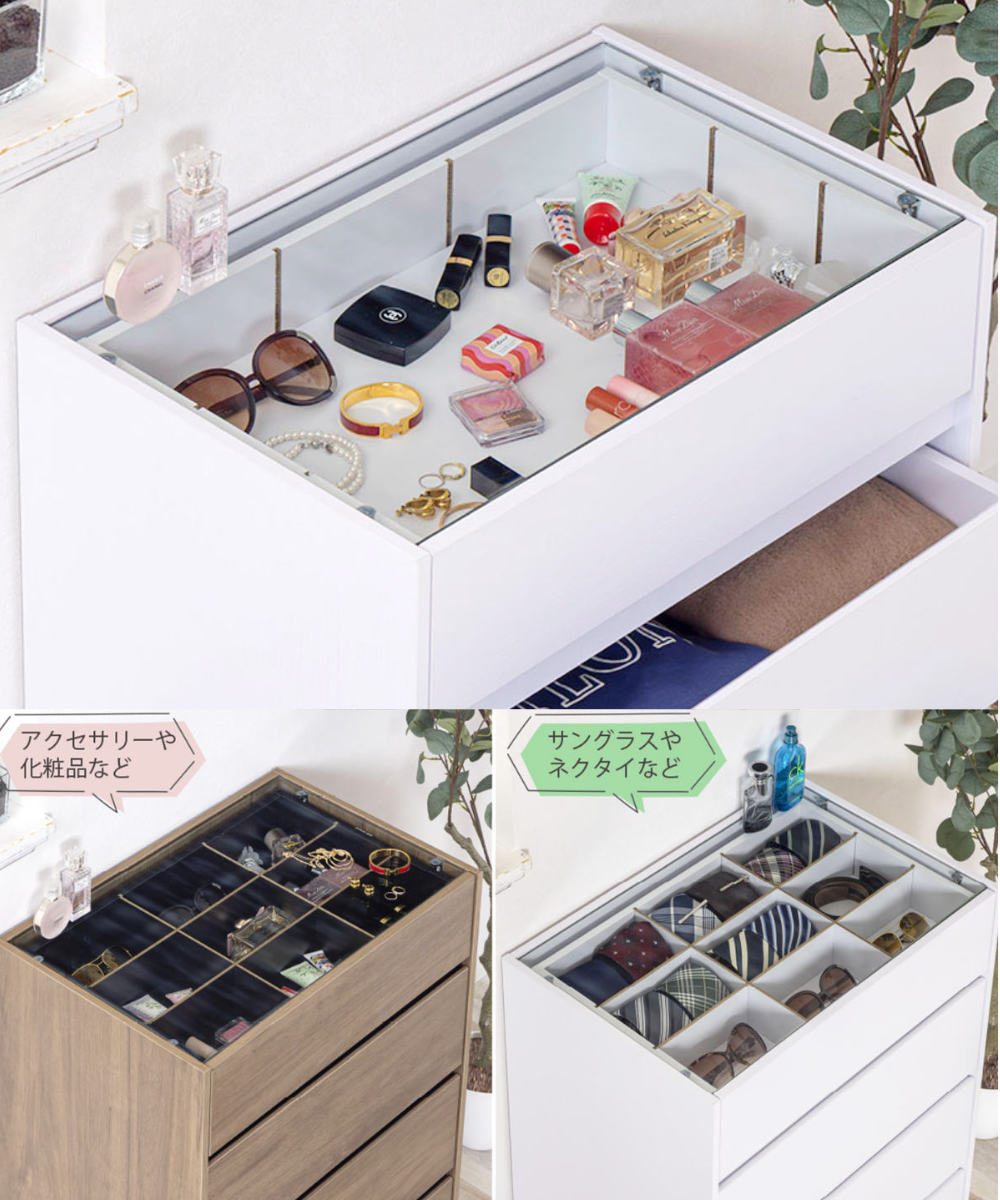 暮らしを美しく魅せる収納 ガラス天板付きチェスト