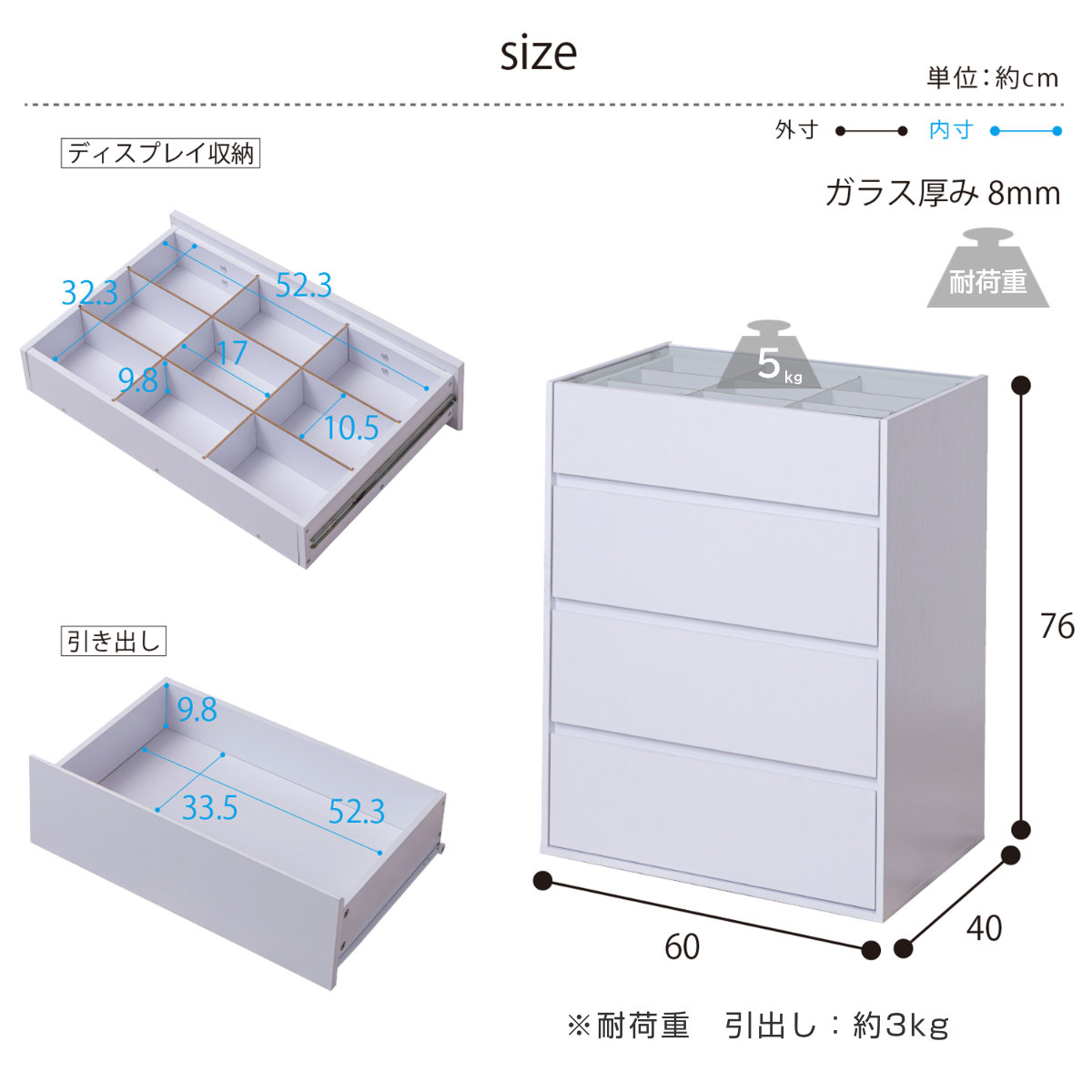 | 引き出し1段あたり耐荷重 | 3kg |