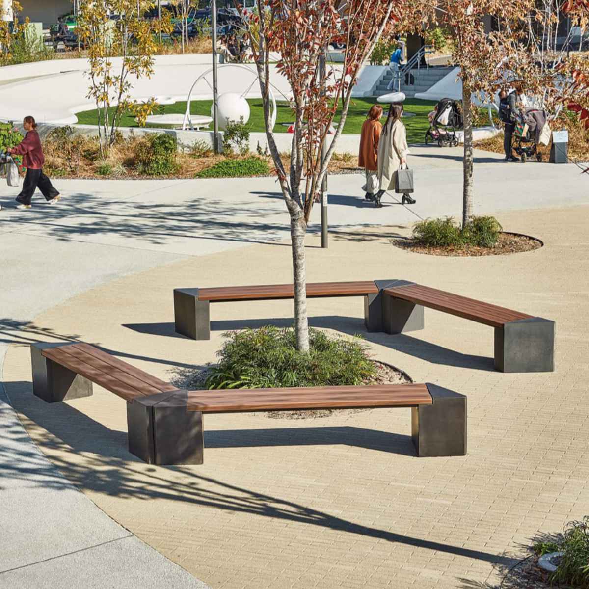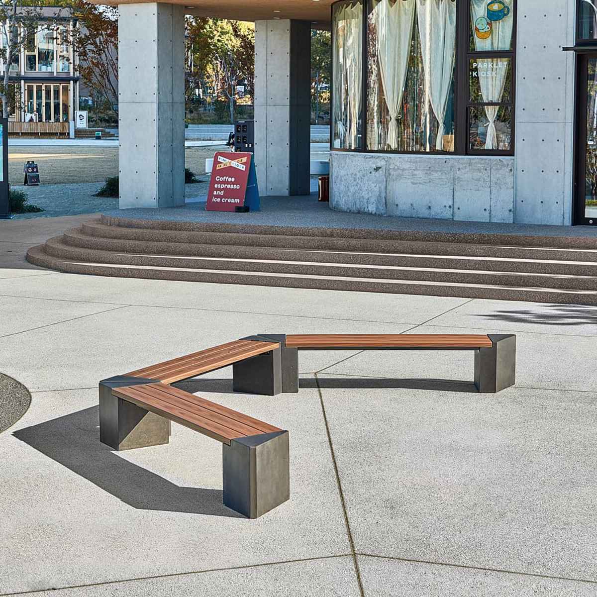 ユニットを自由に組み合わせて、理想のレイアウトを実現できるコネクトベンチです。ベースユニットBを取り付けることで、ベンチの形状を直線にしたり角度をつけたりと自在にアレンジできます。
